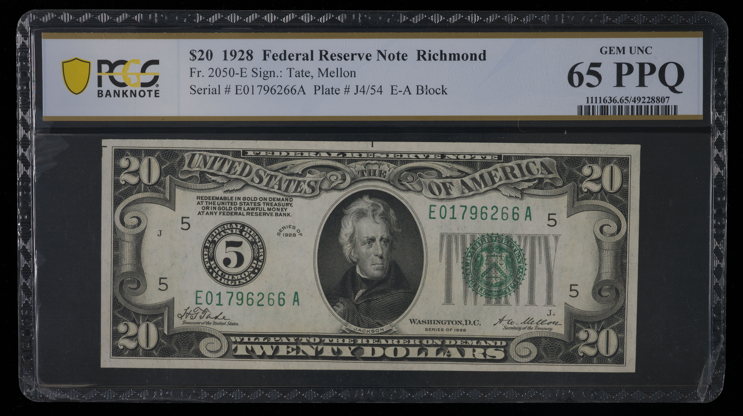 PCGS Gem UNC-65 PPQ 1928 $20 FRN
