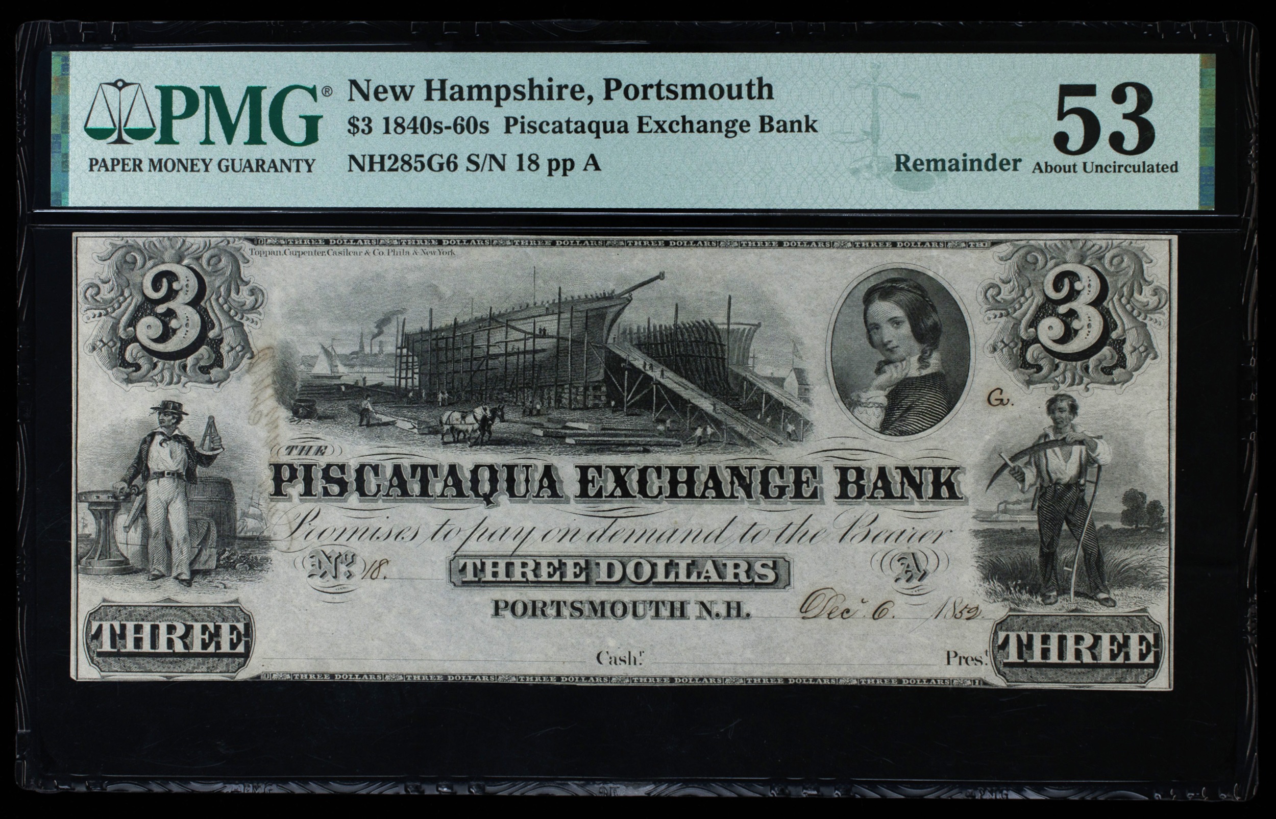 New Hampshire. Portsmouth PMG AU-53 EPQ $3