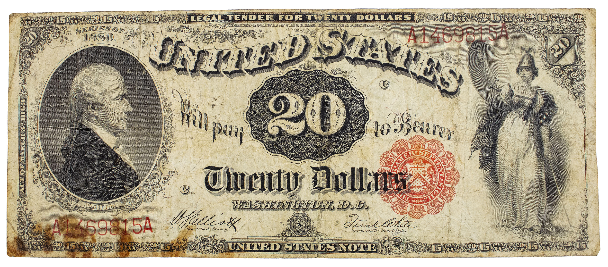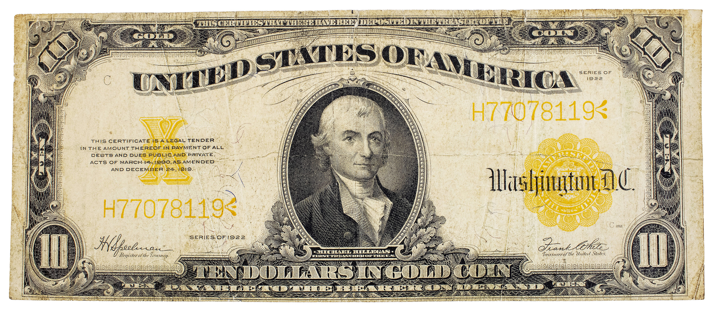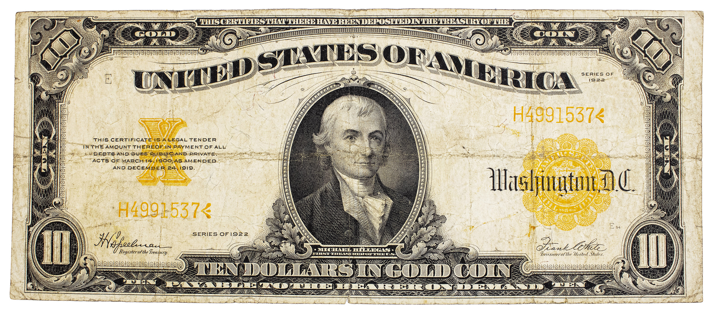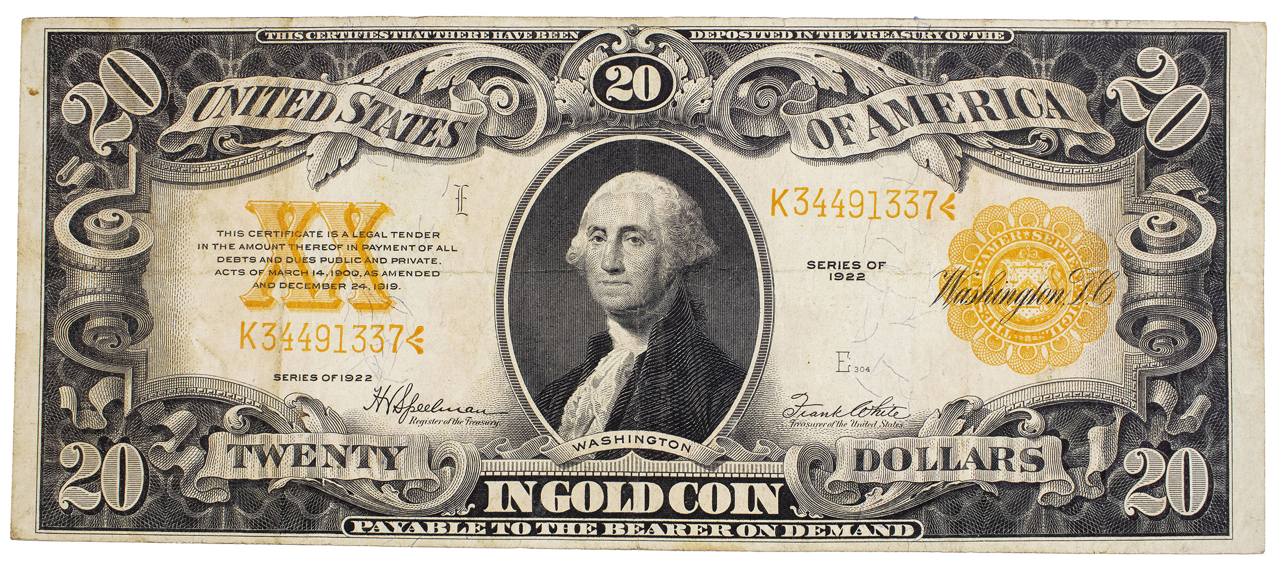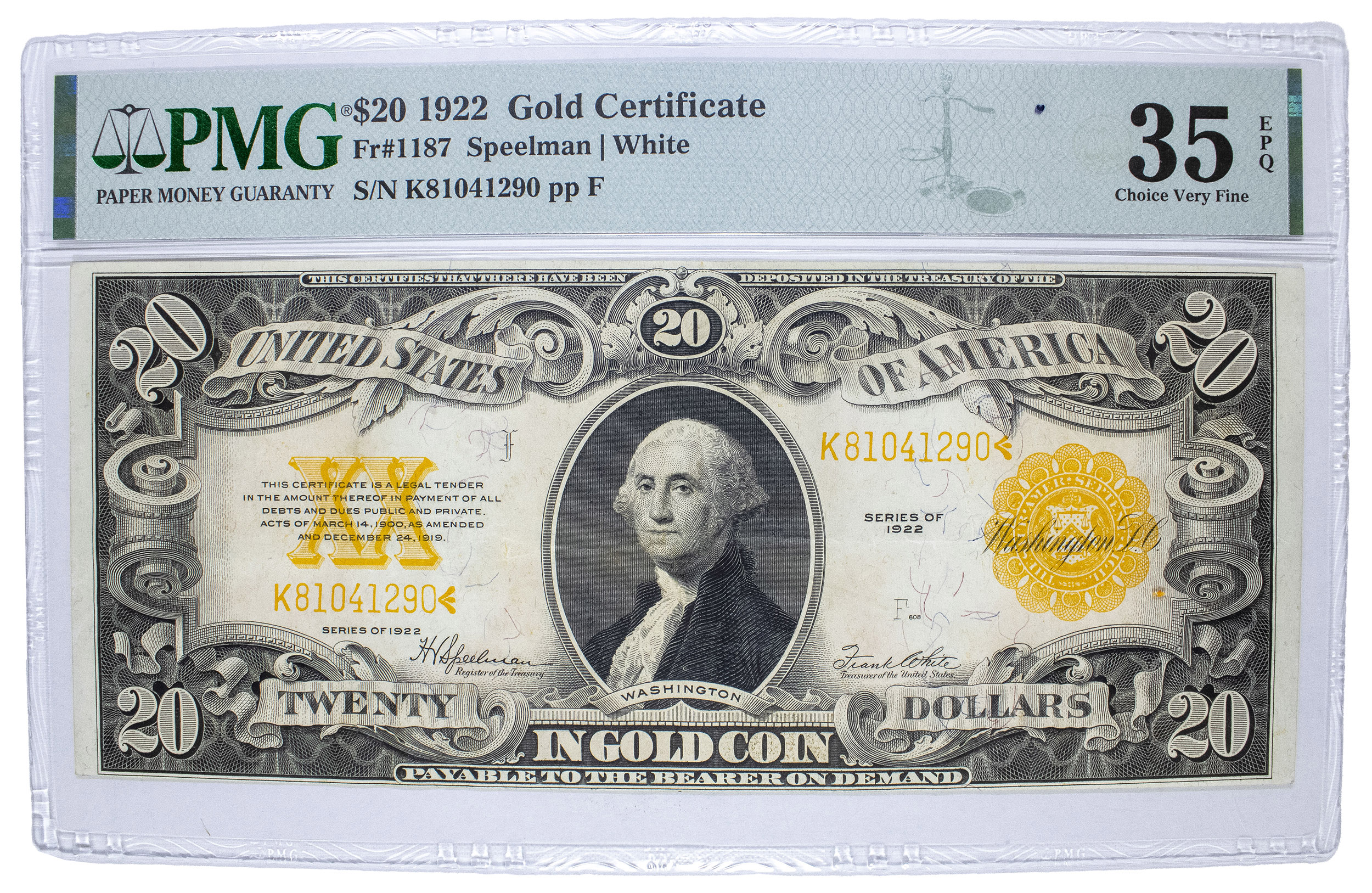 PMG VF-35 EPQ 1922 $20 Gold Coin Note