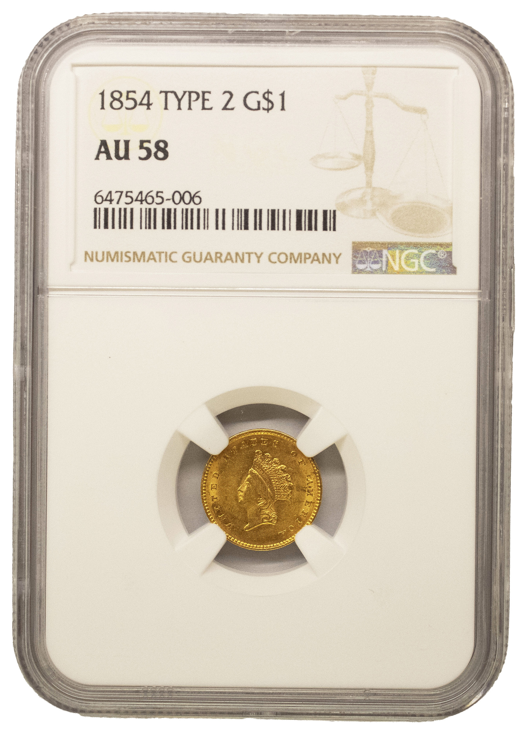 NGC AU-58 1854 Type II Gold Dollar