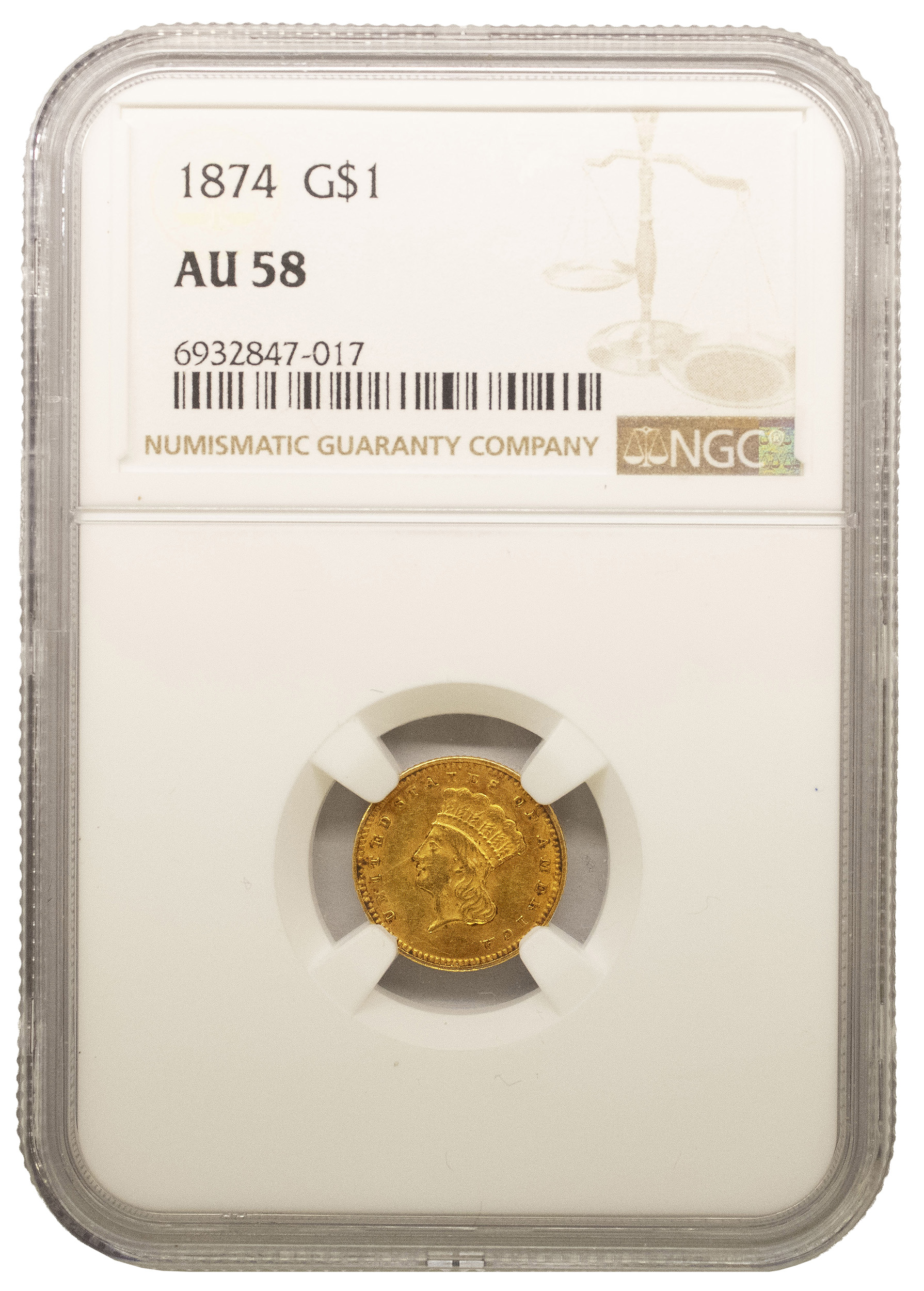 NGC AU-58 1874 Type III Gold $1