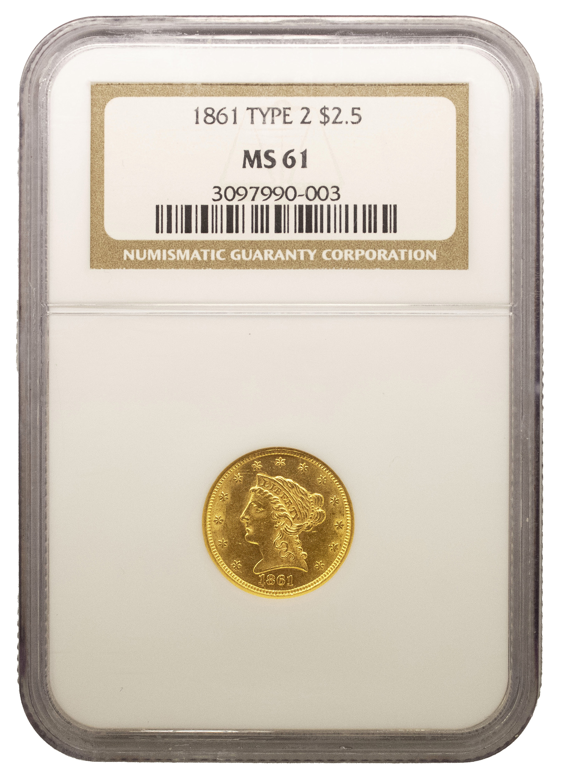 NGC MS-61 1861 Type III Gold $2.50