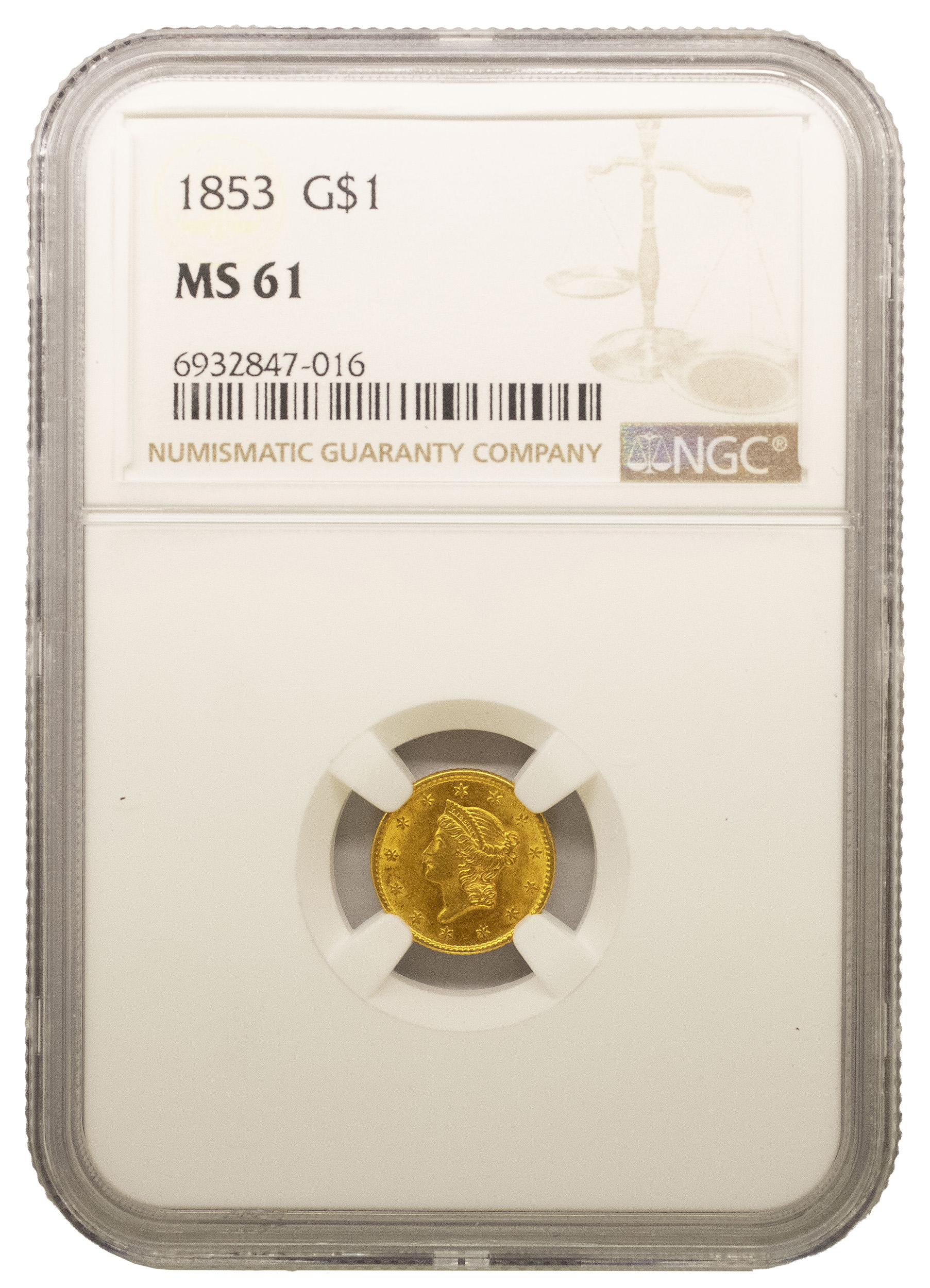 NGC MS-61 1853 Type I Gold $1