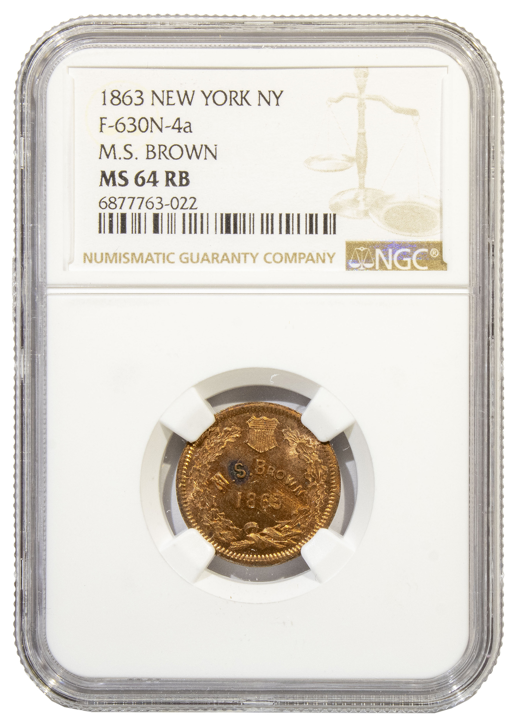 Civil War Token. NGC MS-64 RB
