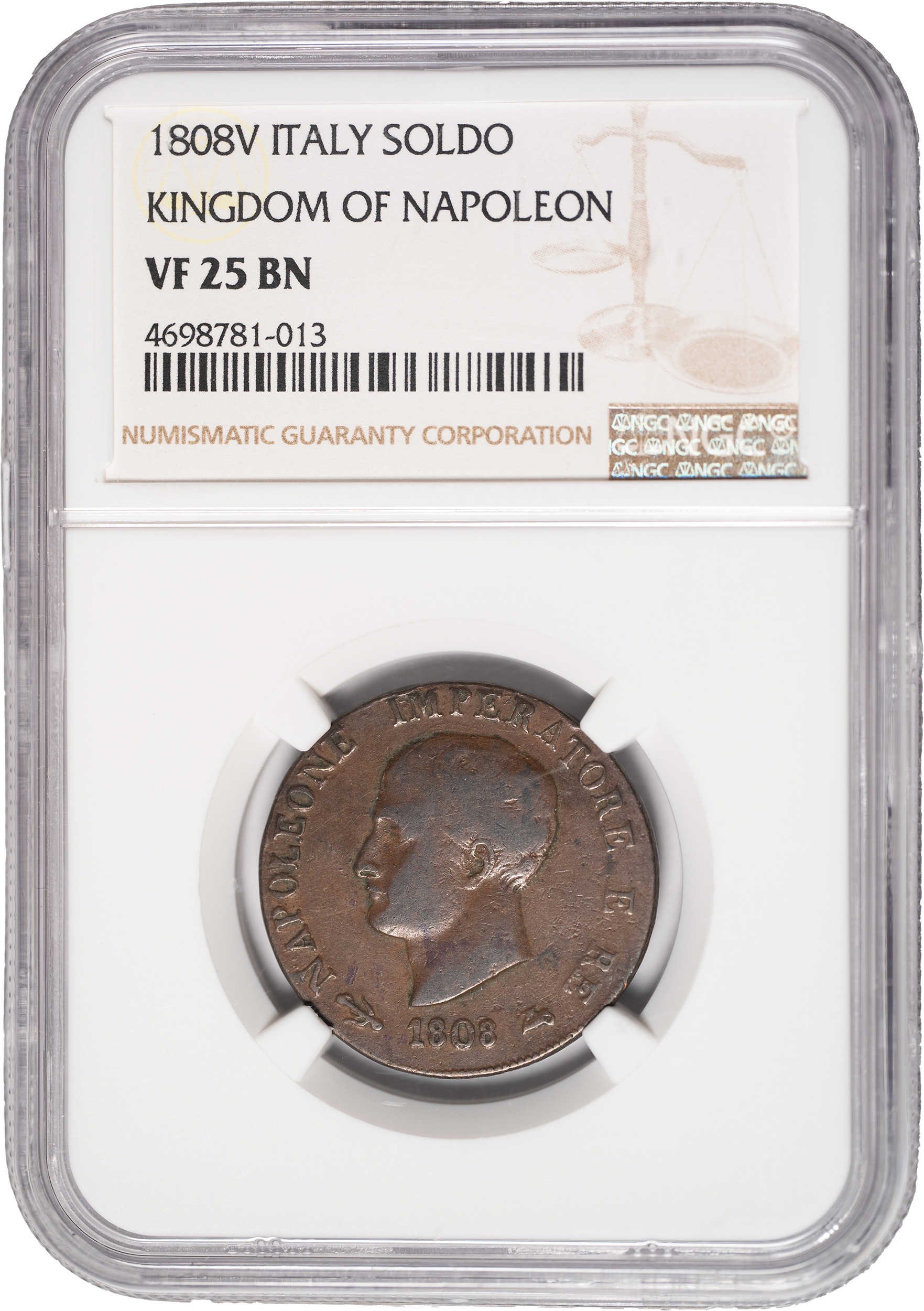 Italy. Napoleon. NGC VF-25 1808-V Soldo