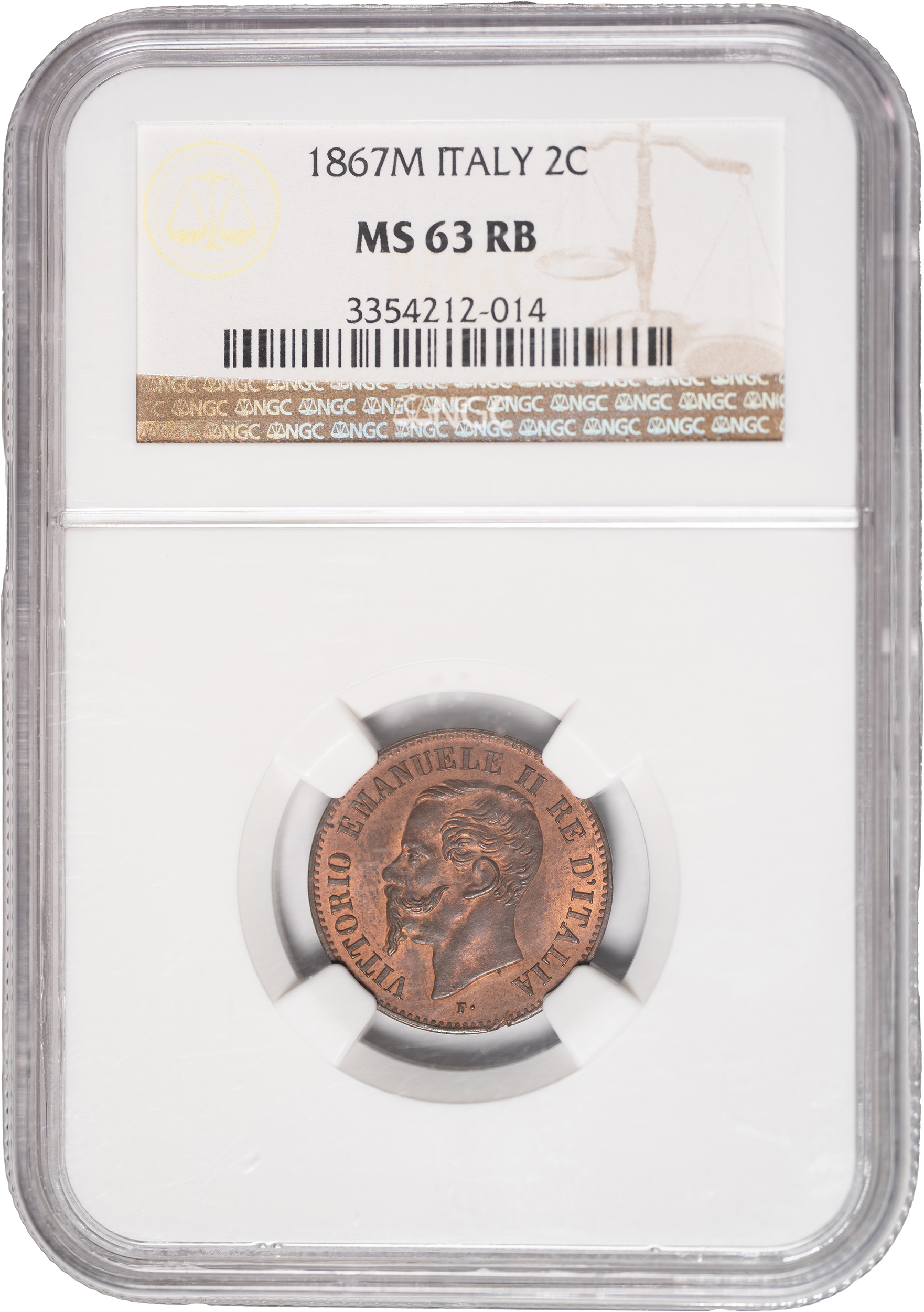 Italy. NGC MS-63 RB 1867-M 2 Centesimi
