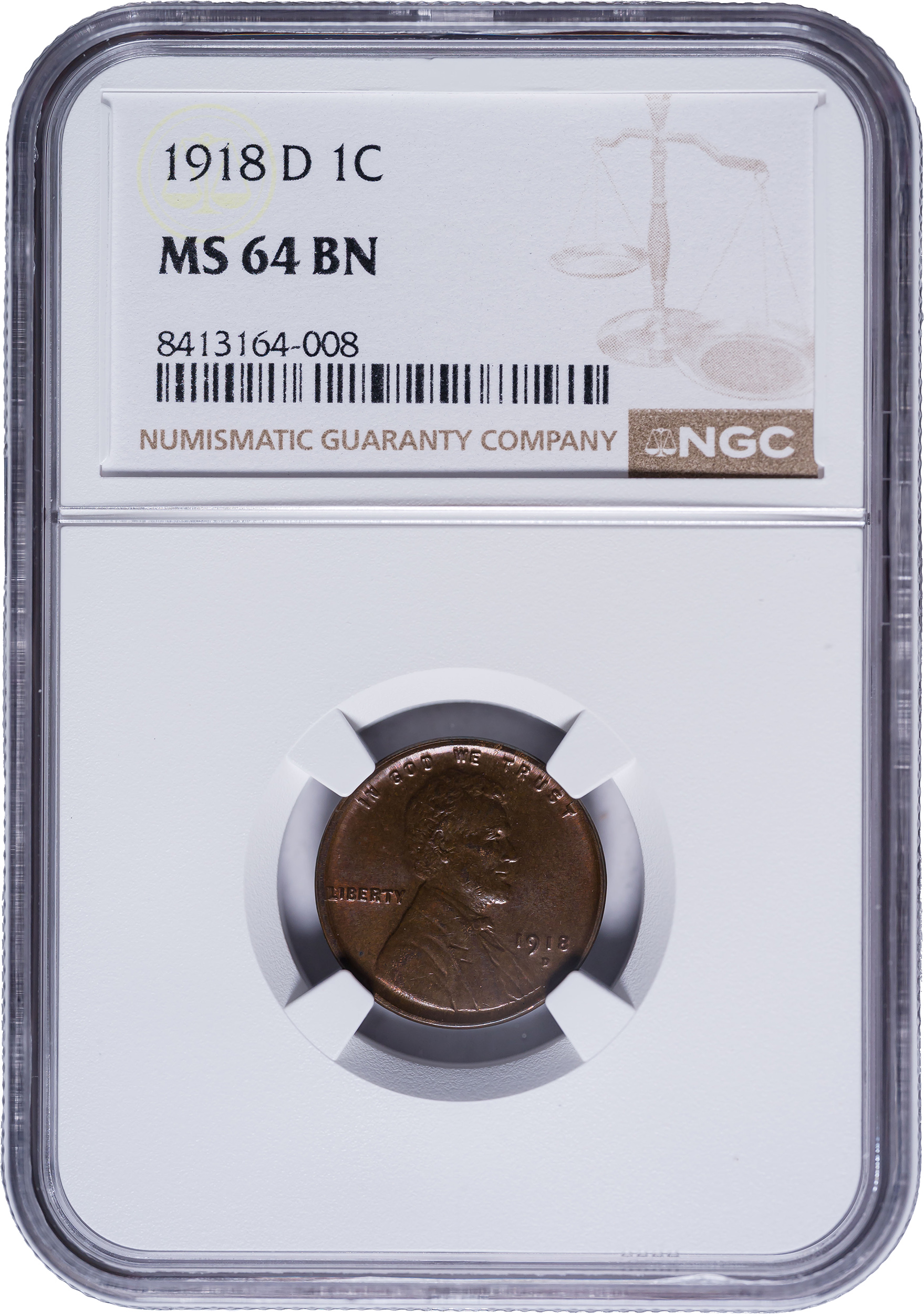 NGC MS-64 BN 1918-D Lincoln Cent