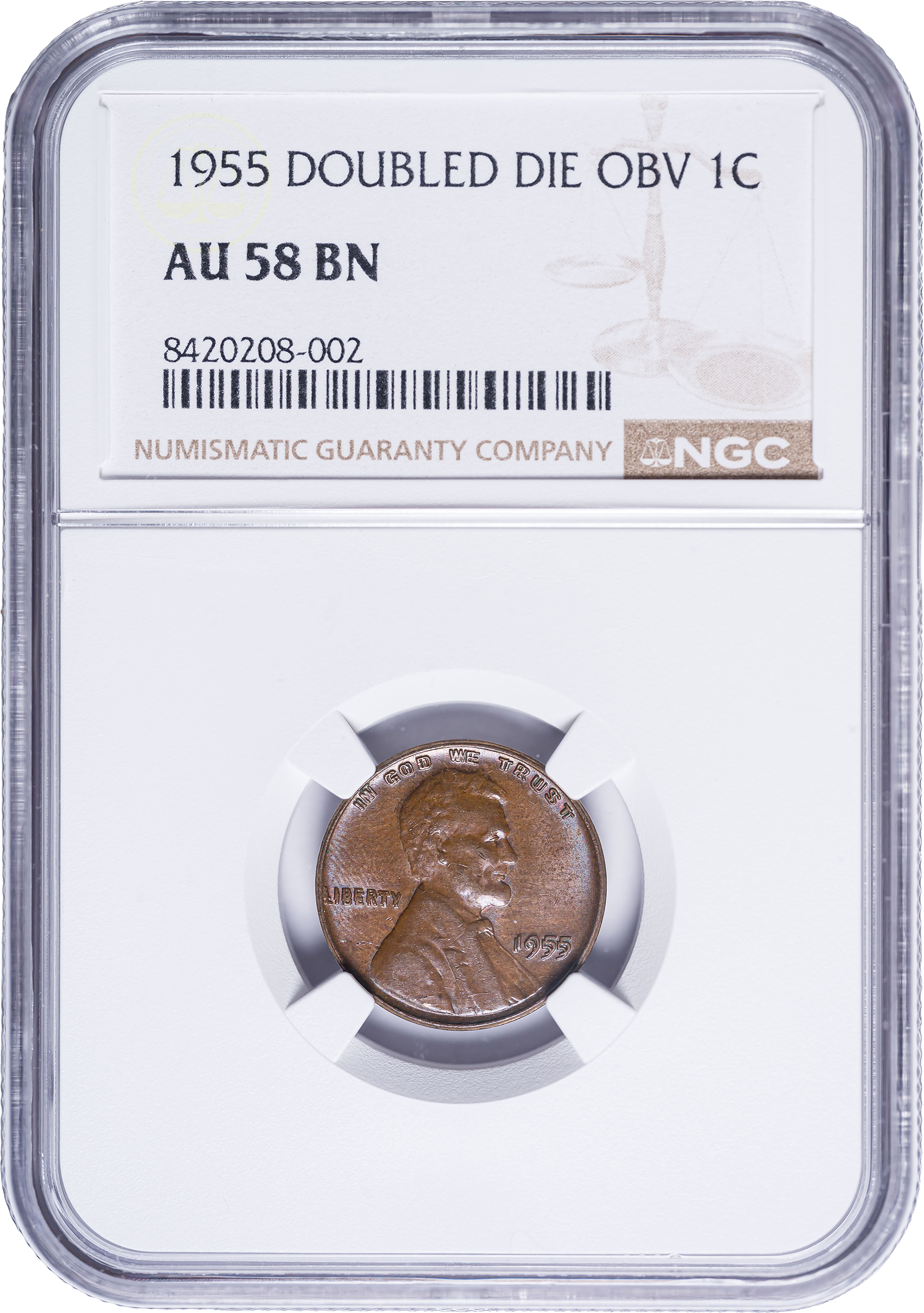 NGC AU-58 1955/55 Double Die Lincoln Cent