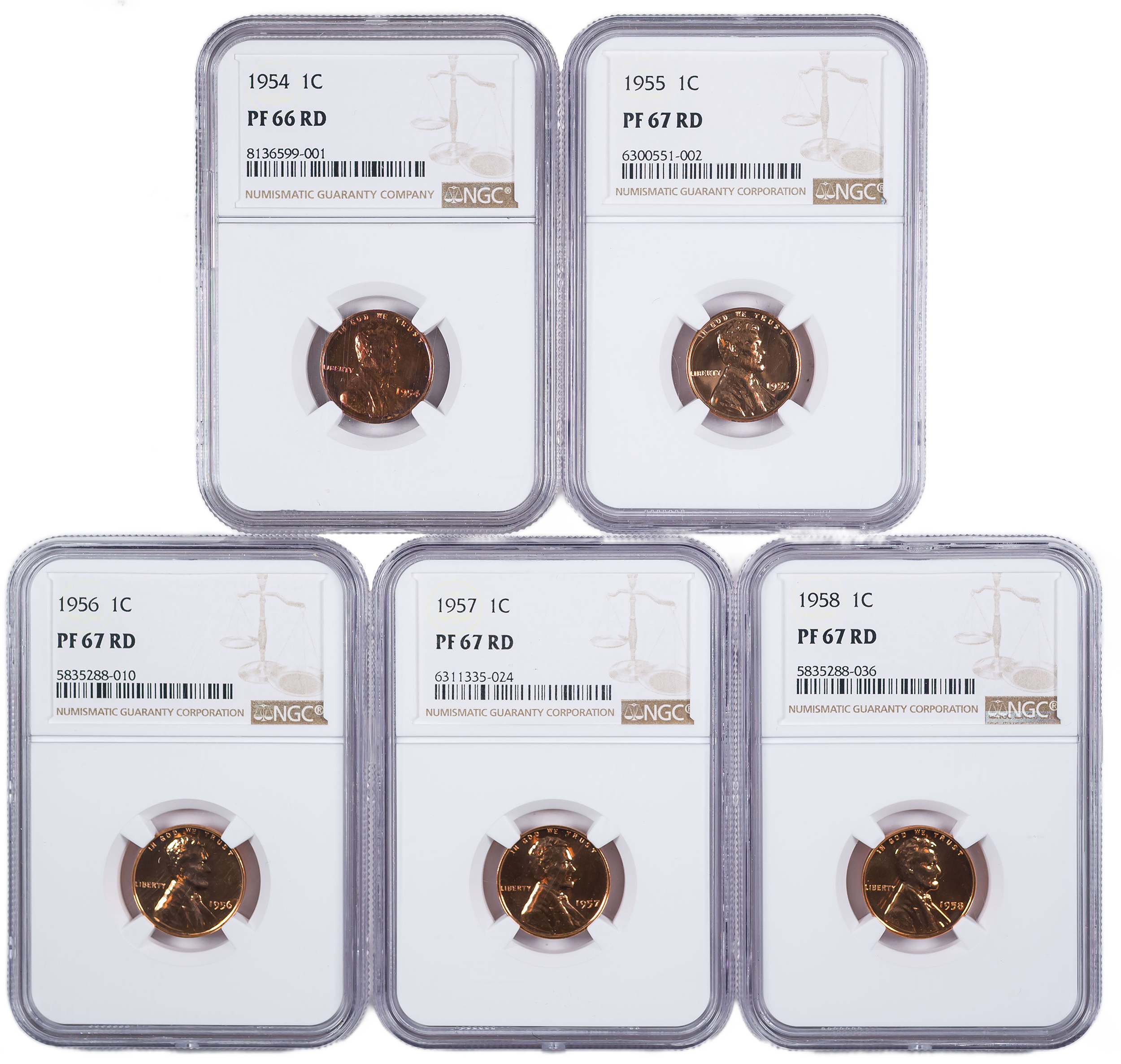 NGC Proof-67 Red 1950's Proof Lincoln Quintet