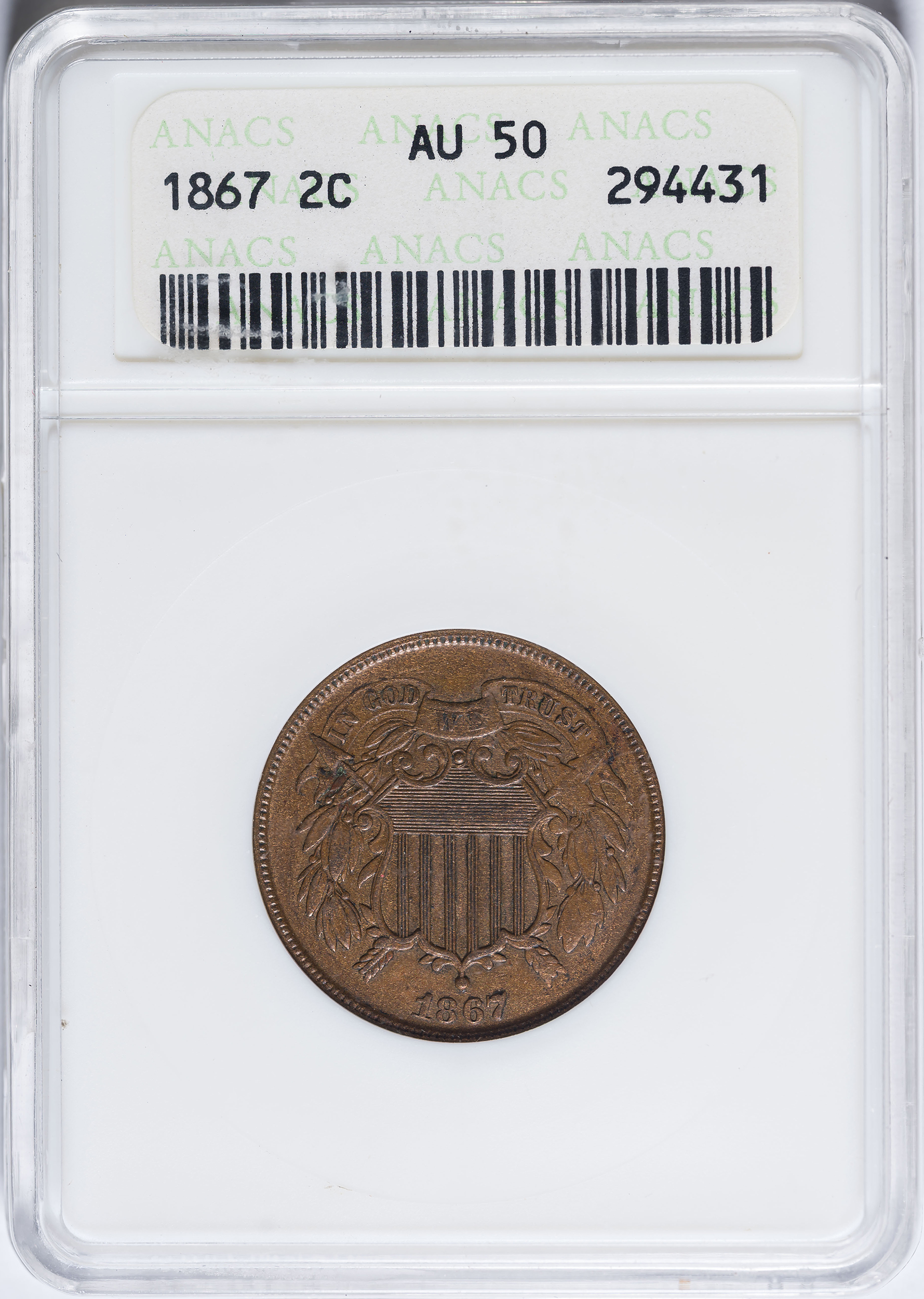 ANACS AU-50 1867 Two-Cents