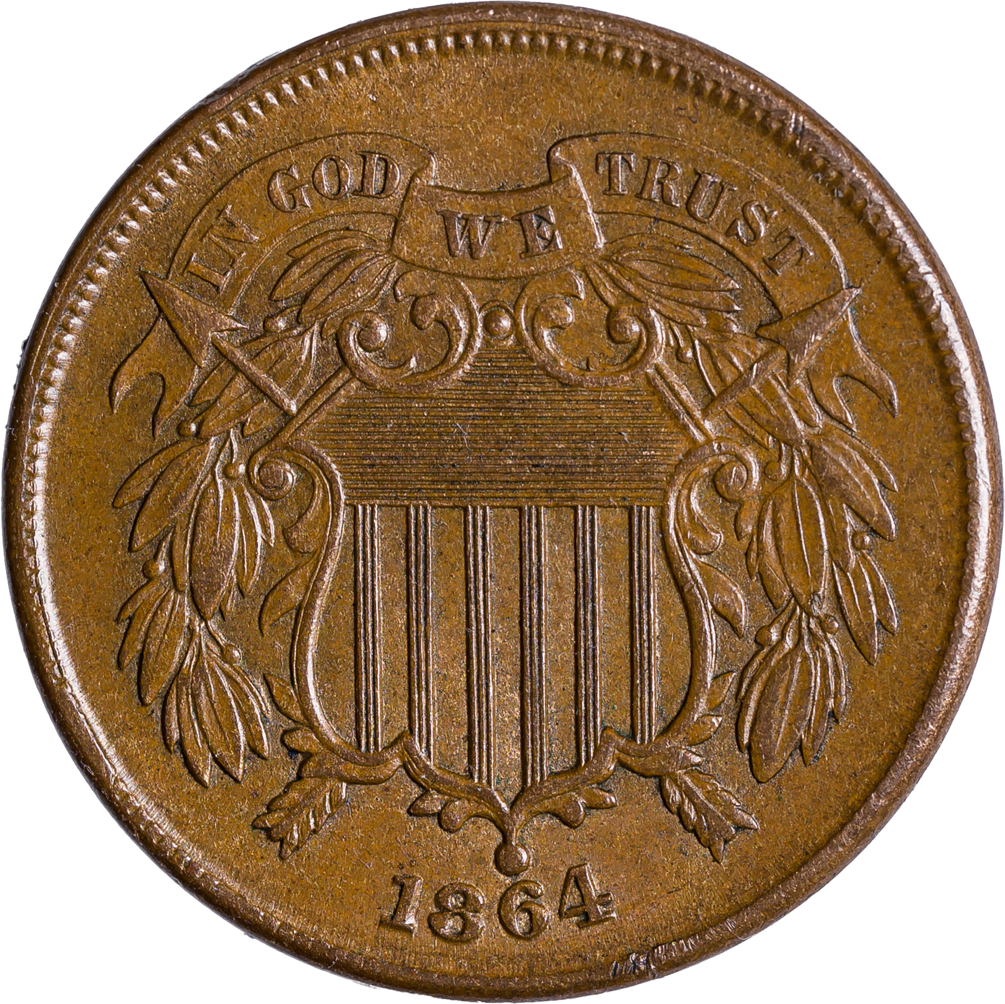 MS-60 BN 1864 Large Motto Two-Cents