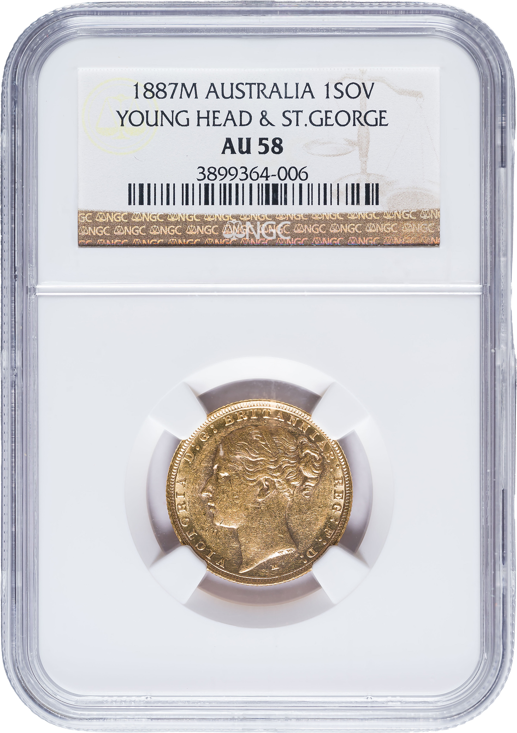 Australia. NGC AU-58 1887-M Gold Sovereign