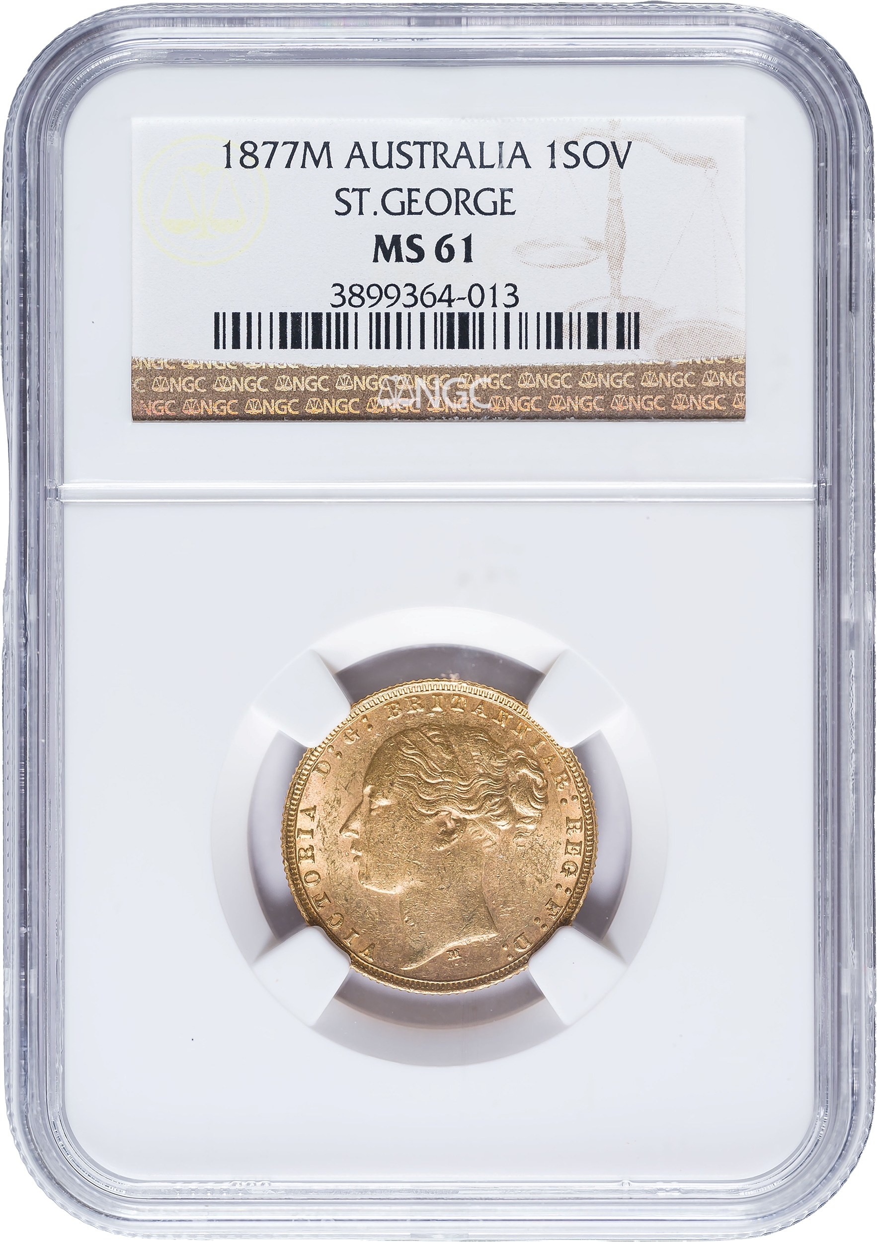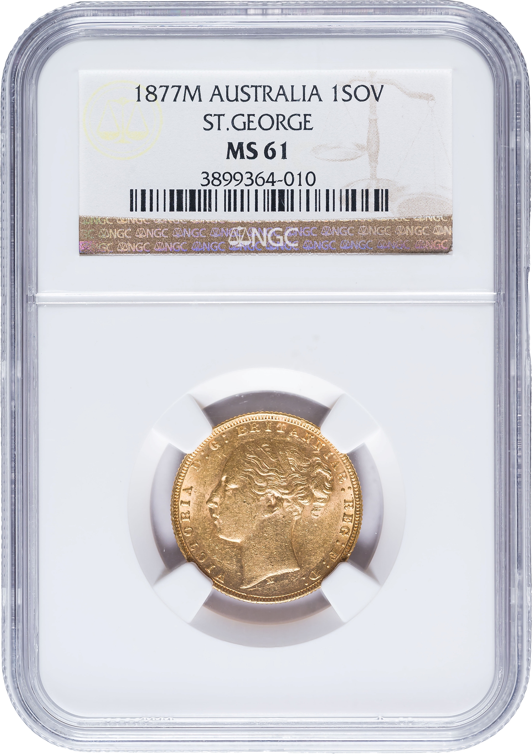 Australia. NGC MS-61 1877-M Gold Sovereign