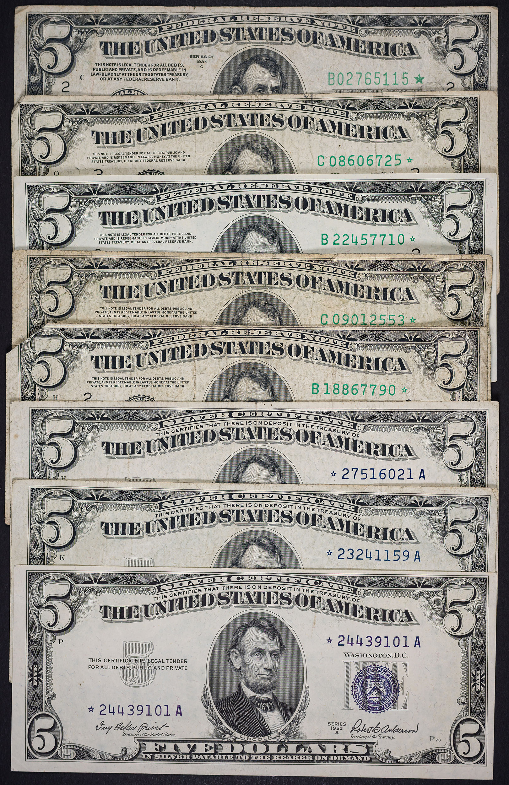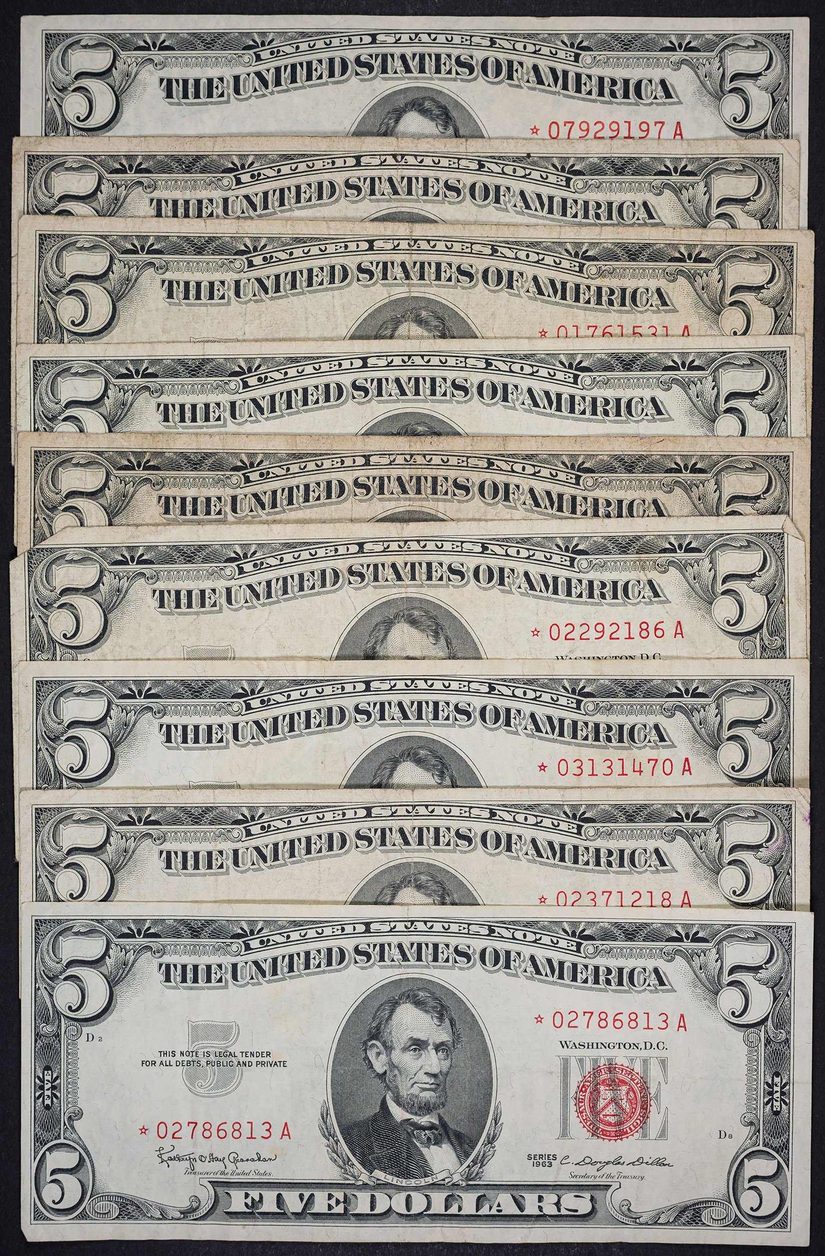 9 Pcs $5 Red Seal 1953/63 Star Notes
