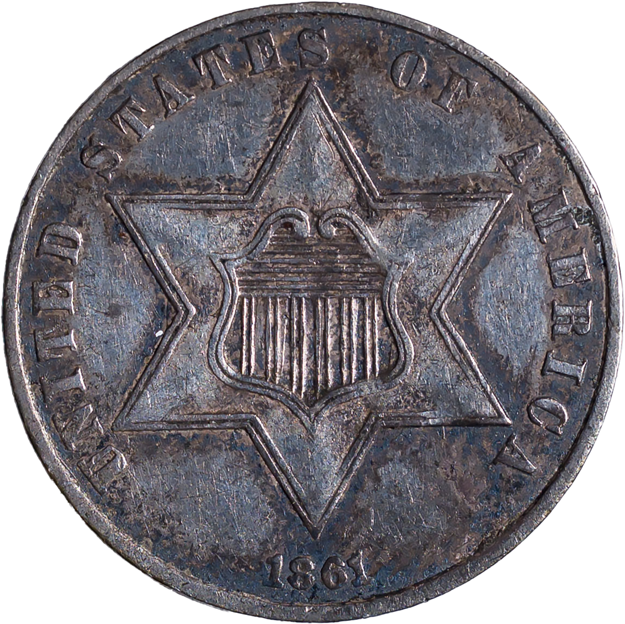 AU-50 1861 Silver Three-Cents