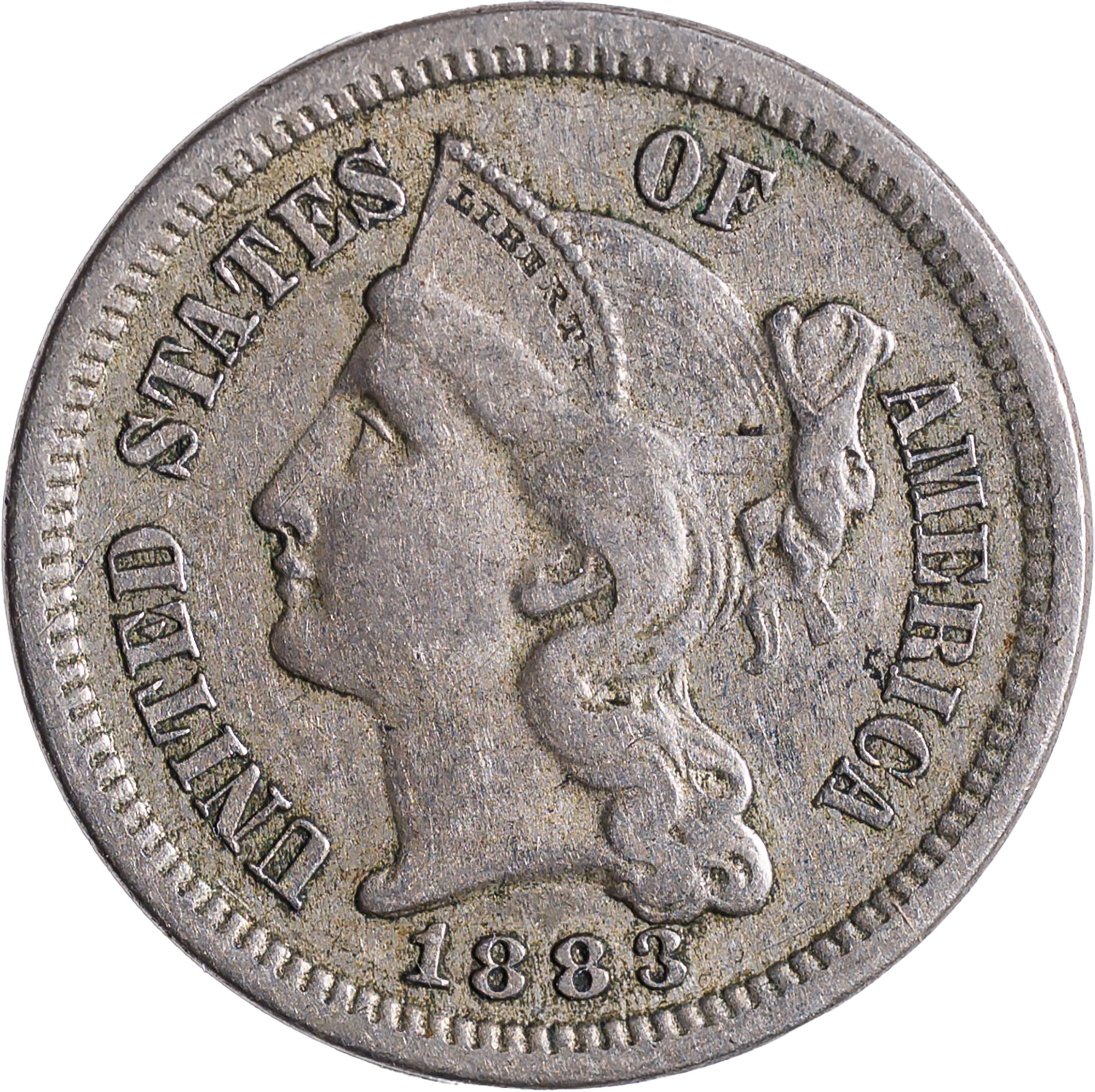 Scarce EF-40 1883 Three Cent Nickel