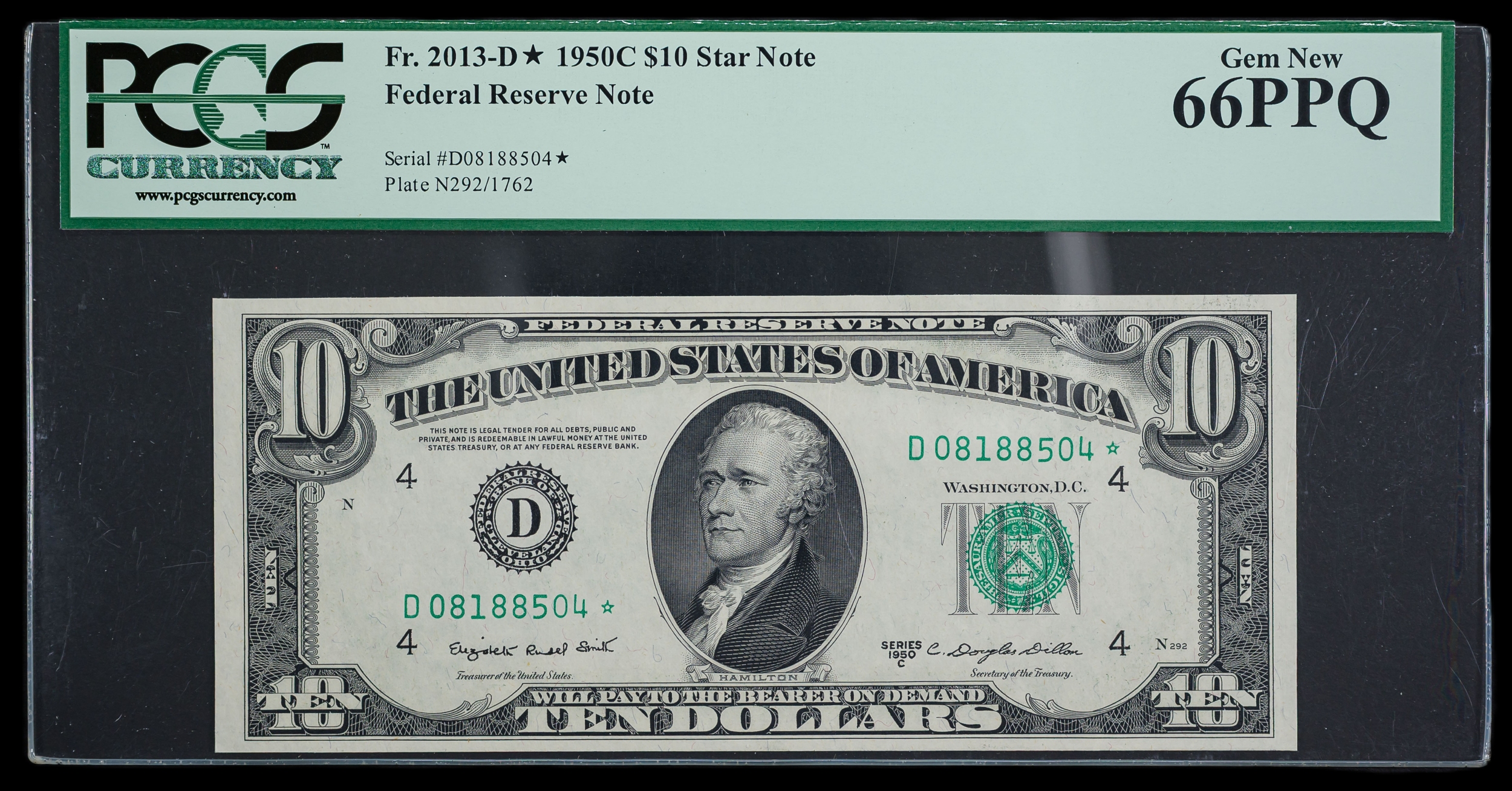 PCGS Gem 66 PPQ 1950-C $10 Star Note