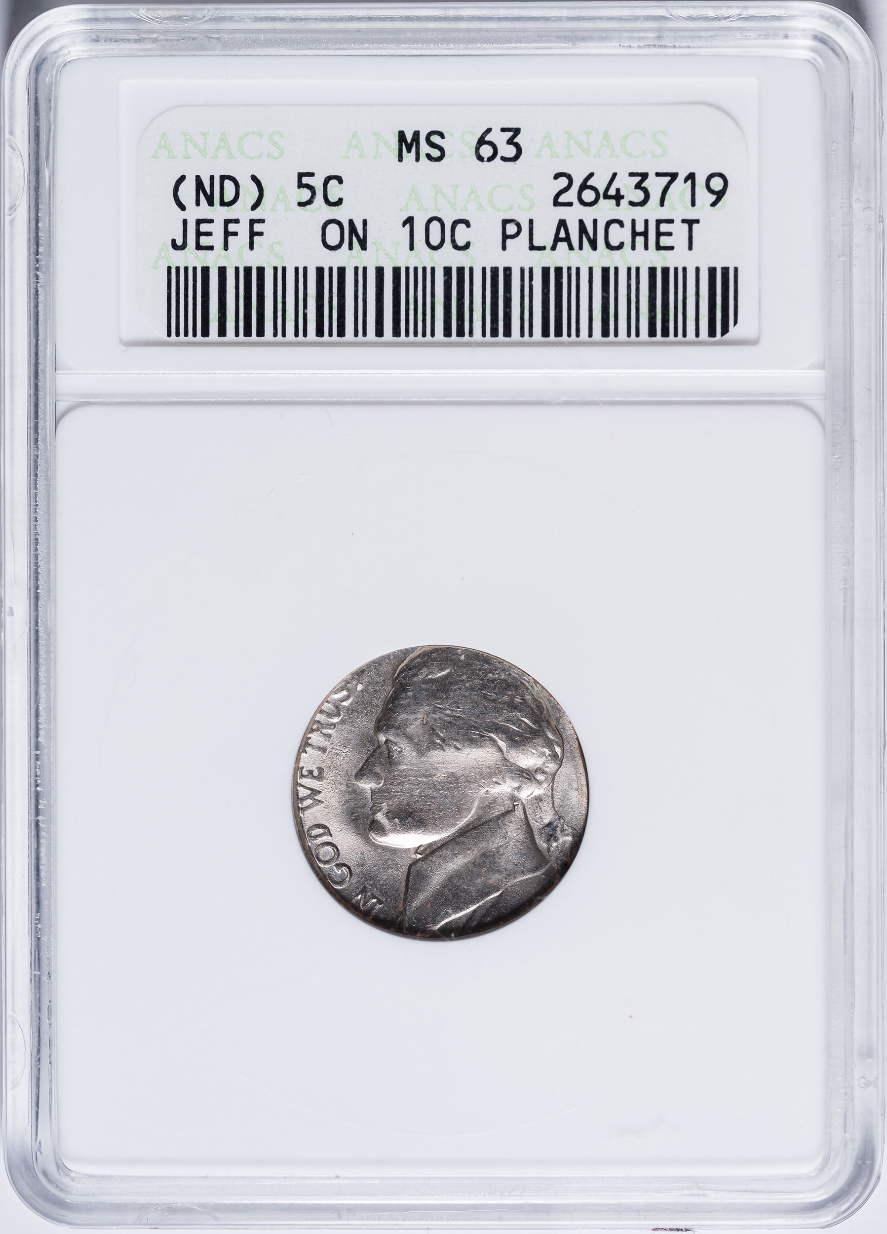 ANACS MS-63 Jefferson Nickel Struck On A Dime