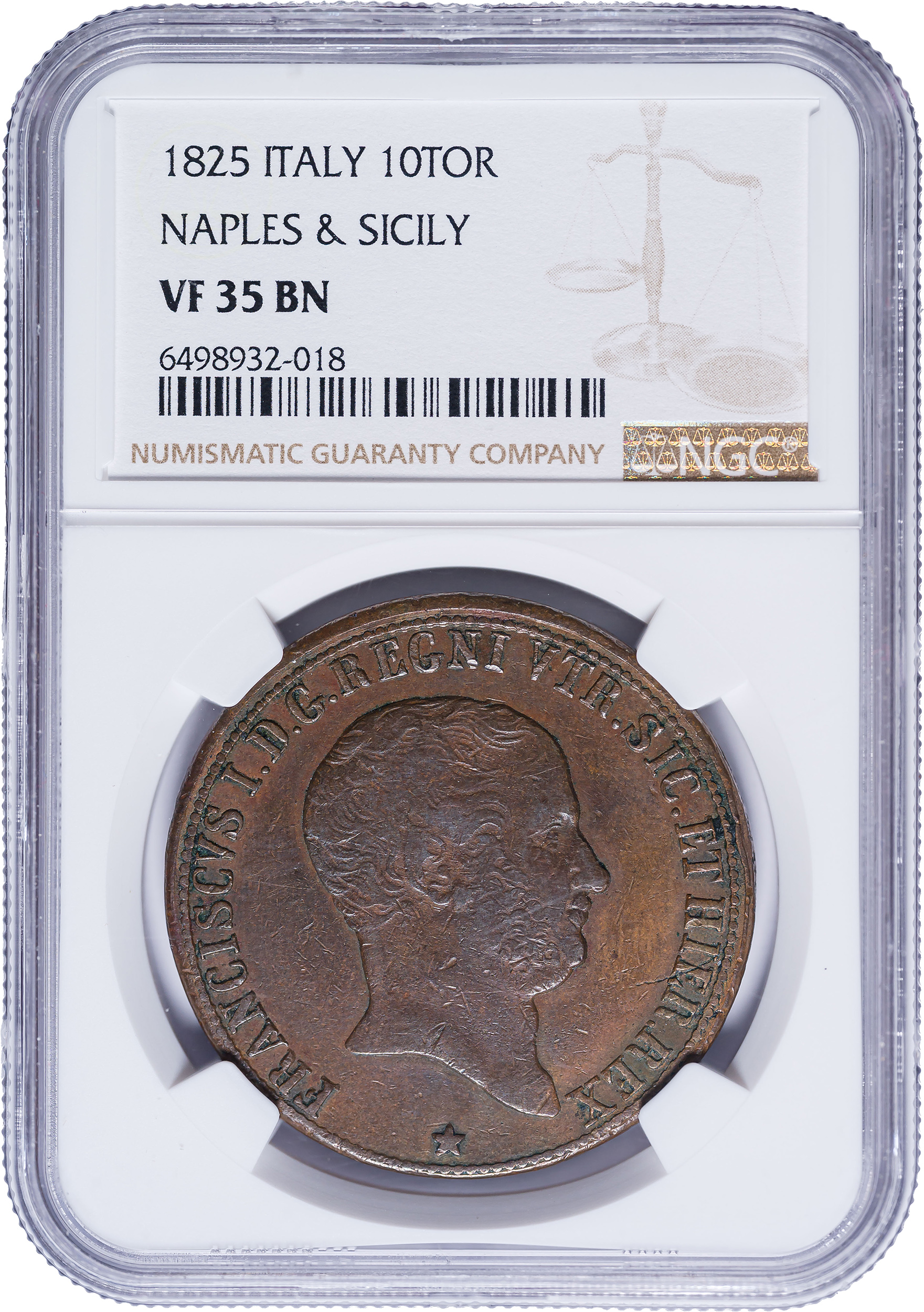 Italy. Naples-Sicily. NGC VF-35 1825 10 Tornesi