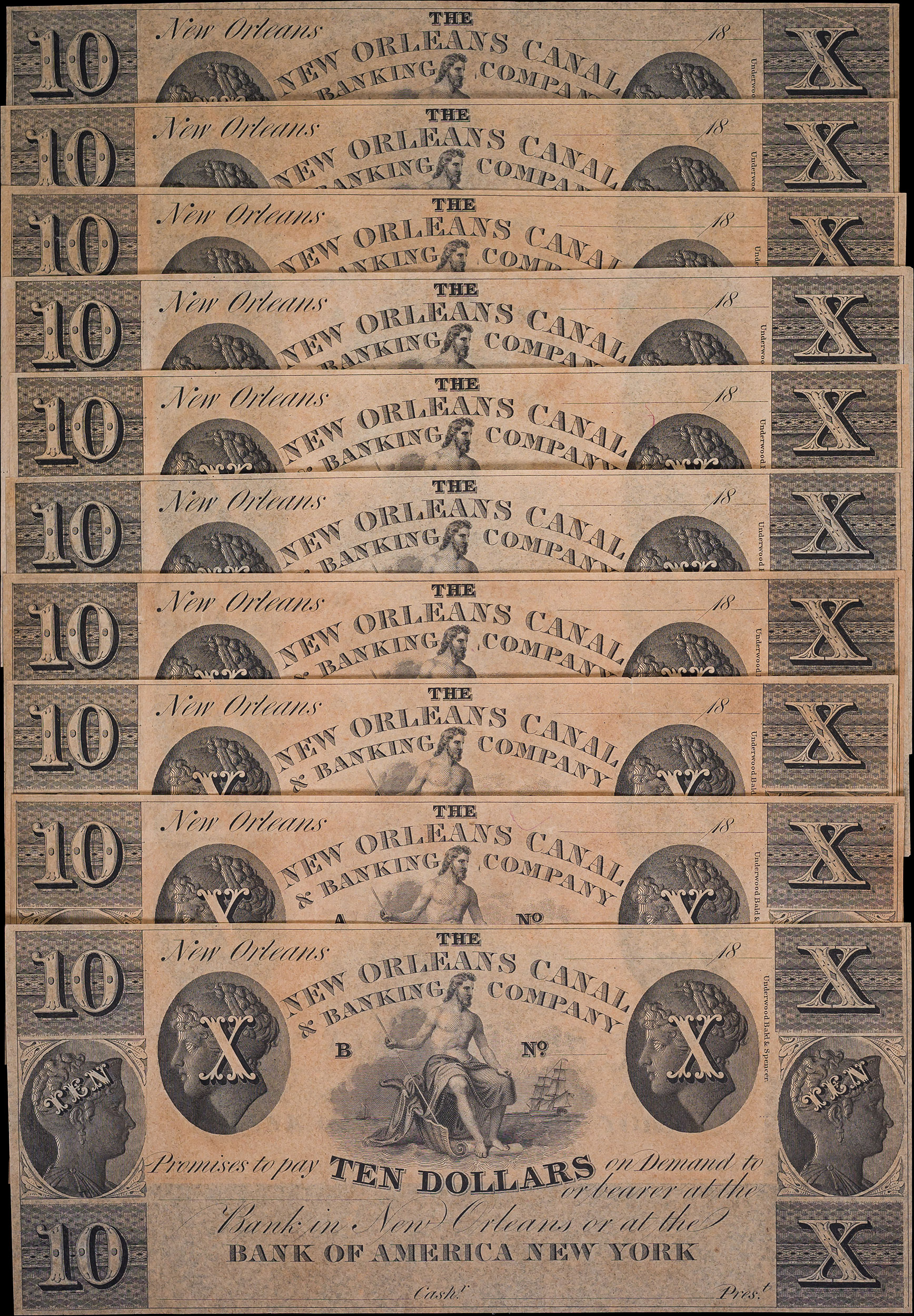 10 Pcs New Orleans LA 1830's $10 Obsolete Notes