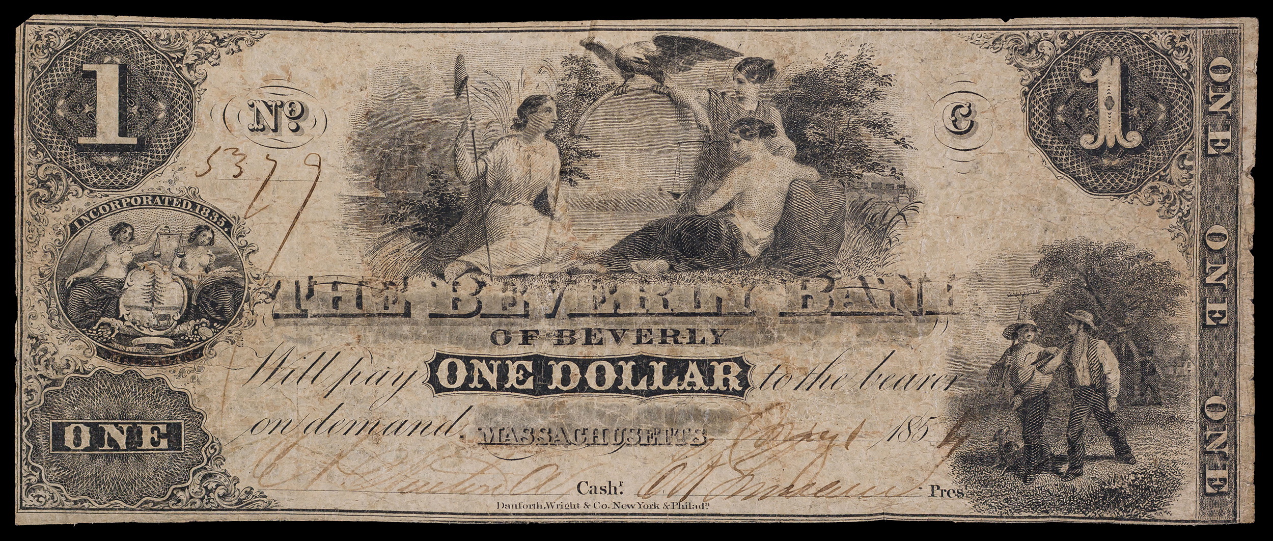 Beverly MA. Fine to VF 1854 $1 Scarcity