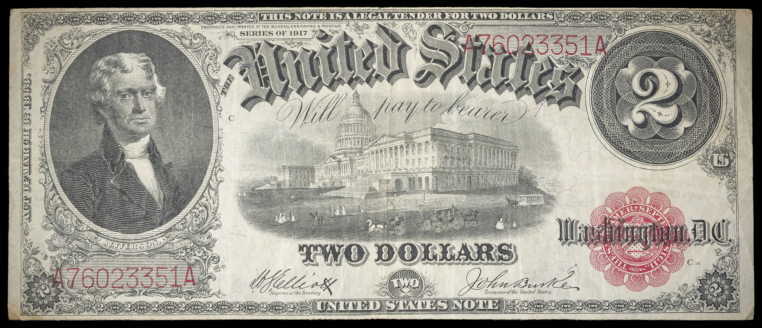 Fine Details 1917 $2 U.S. Note