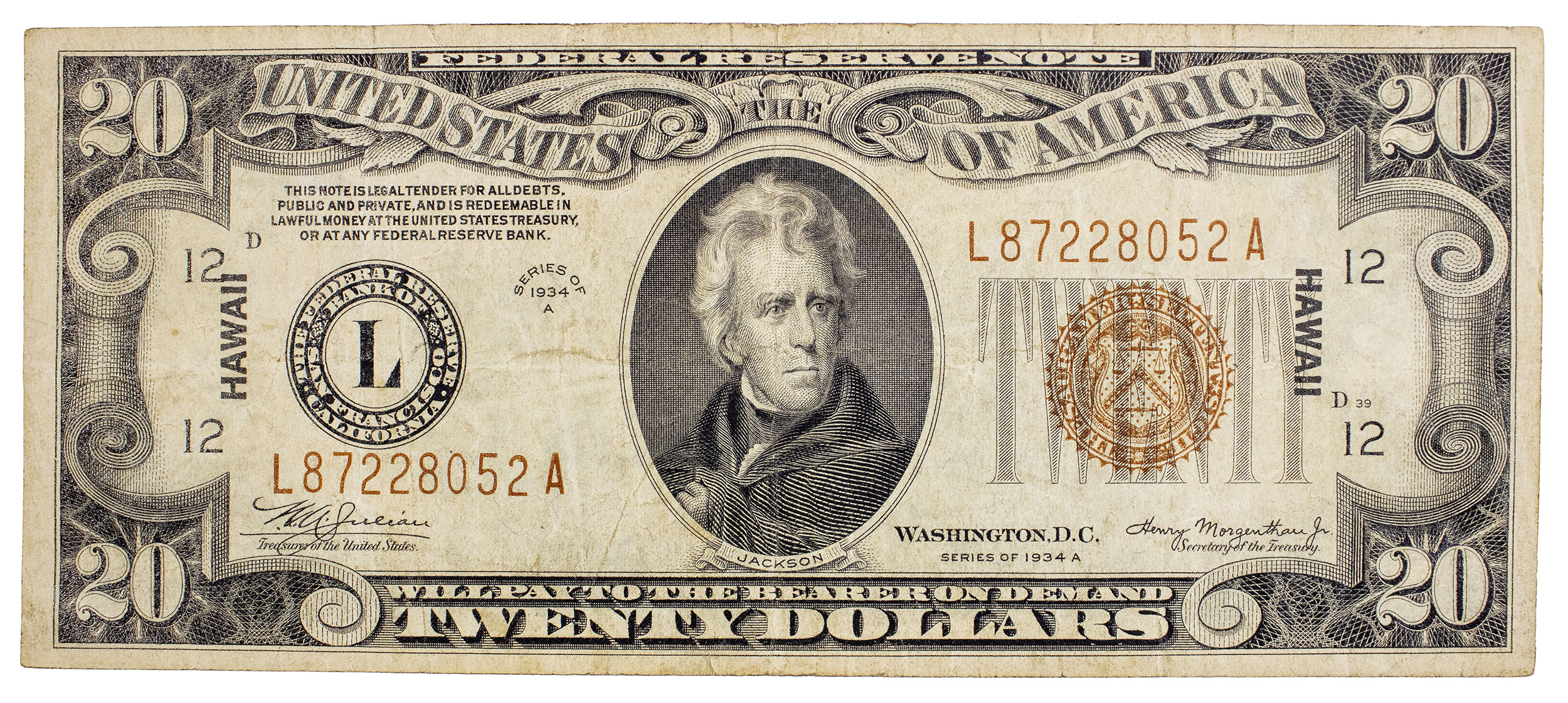 VF Series 1934-A Hawaii Overprint $20 Note
