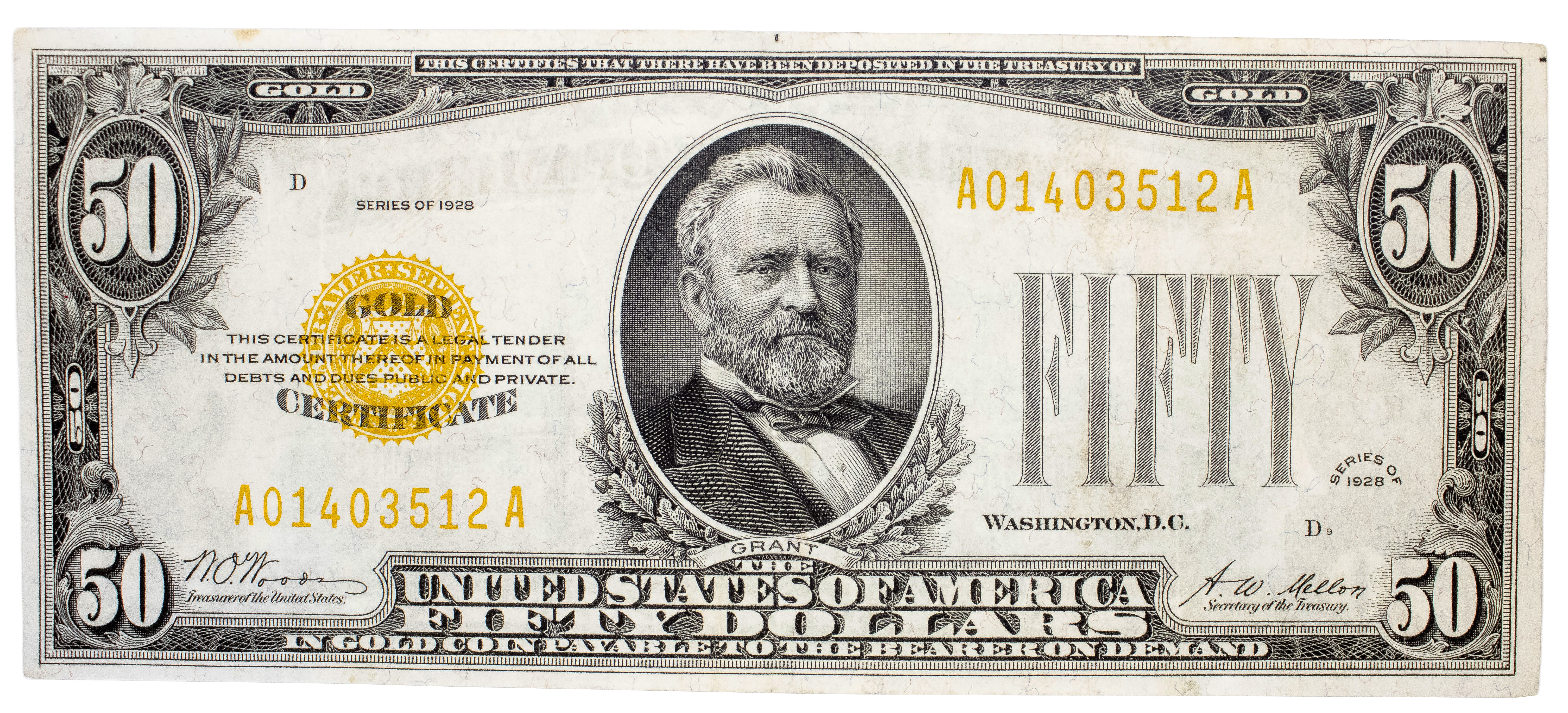 EF to AU Series 1928 $50 Gold Certificate