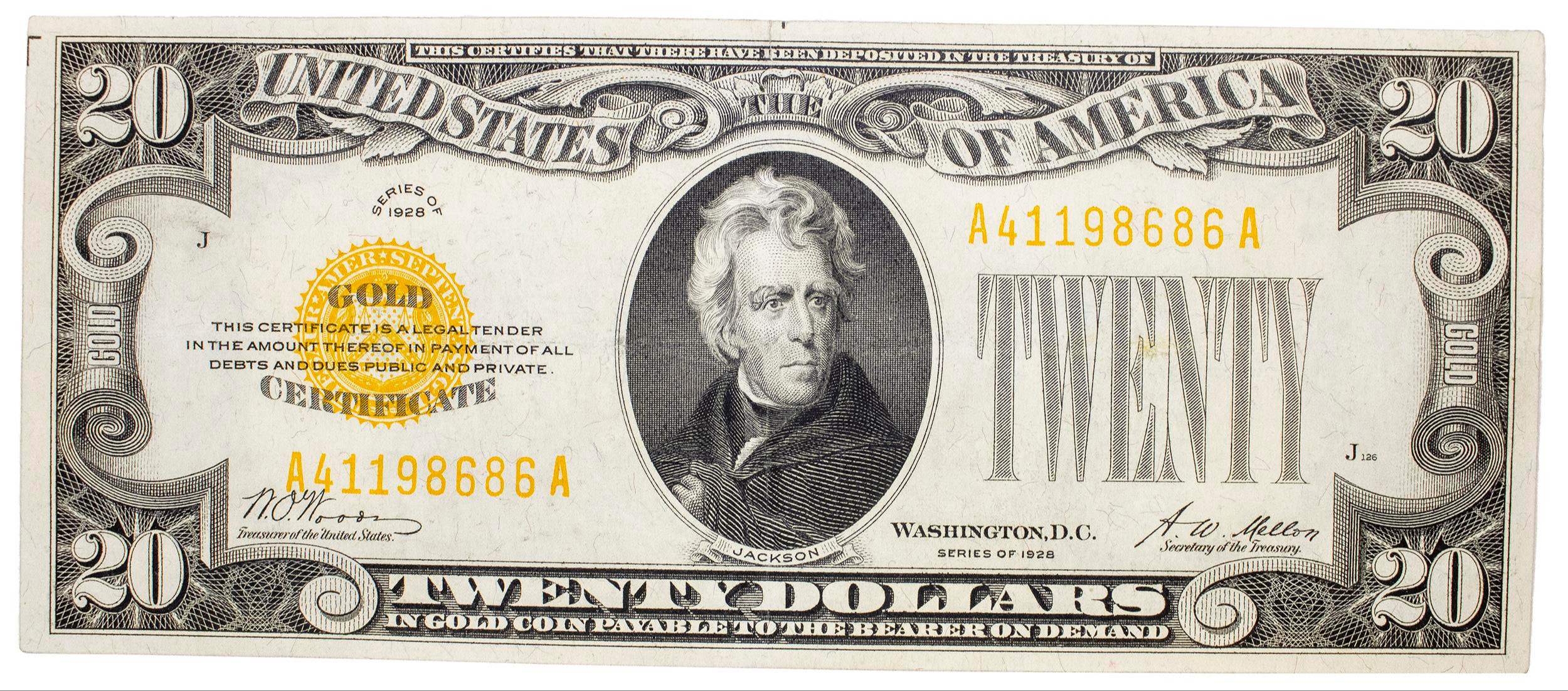 EF to AU Series 1928 $20 Gold Certificate