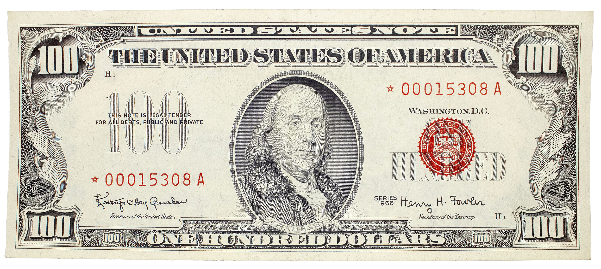 Crisp AU+ 1966 Red Seal $100 Star Note