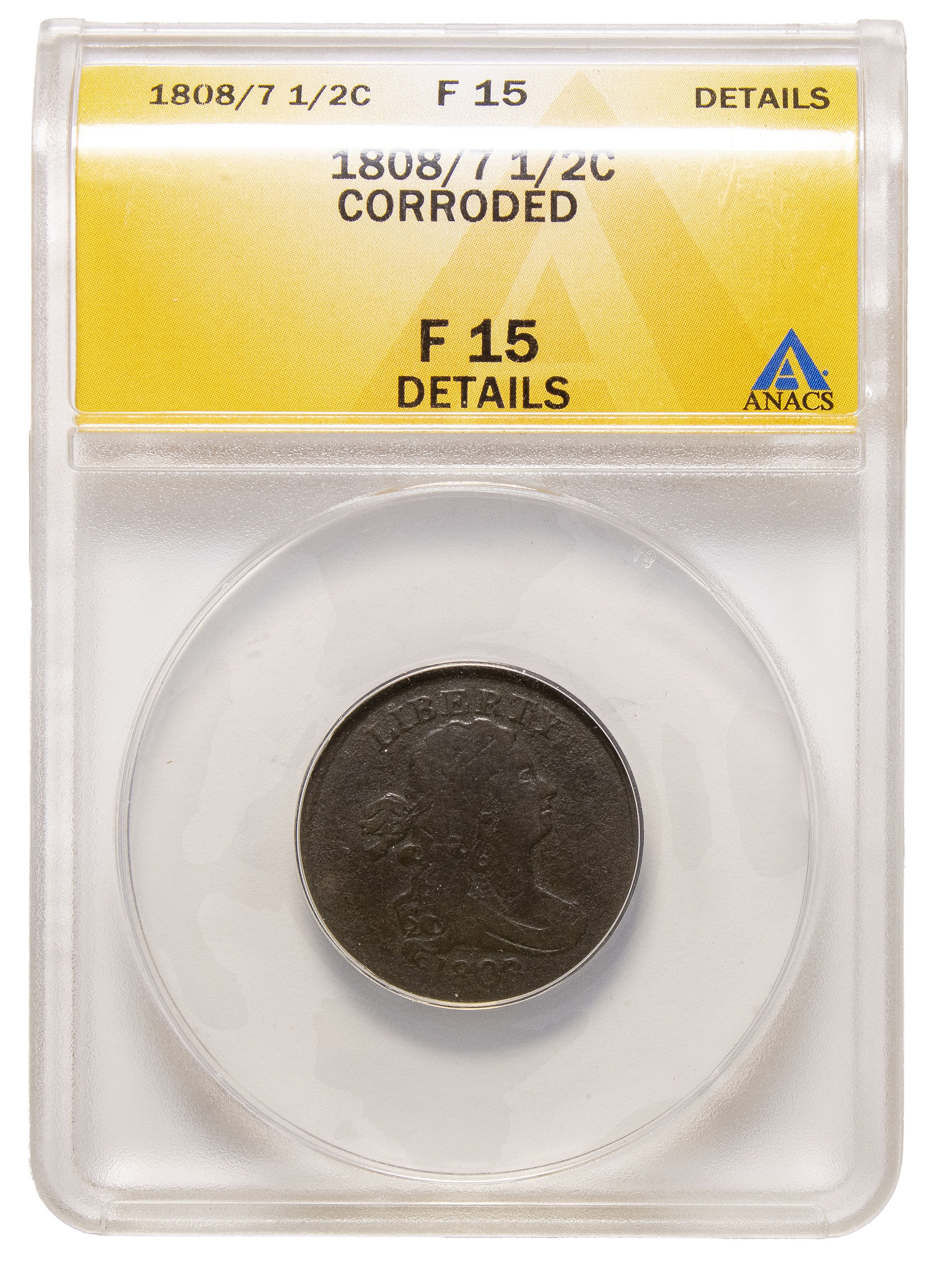 ANACS F-15 Details 1808/7 Half Cent