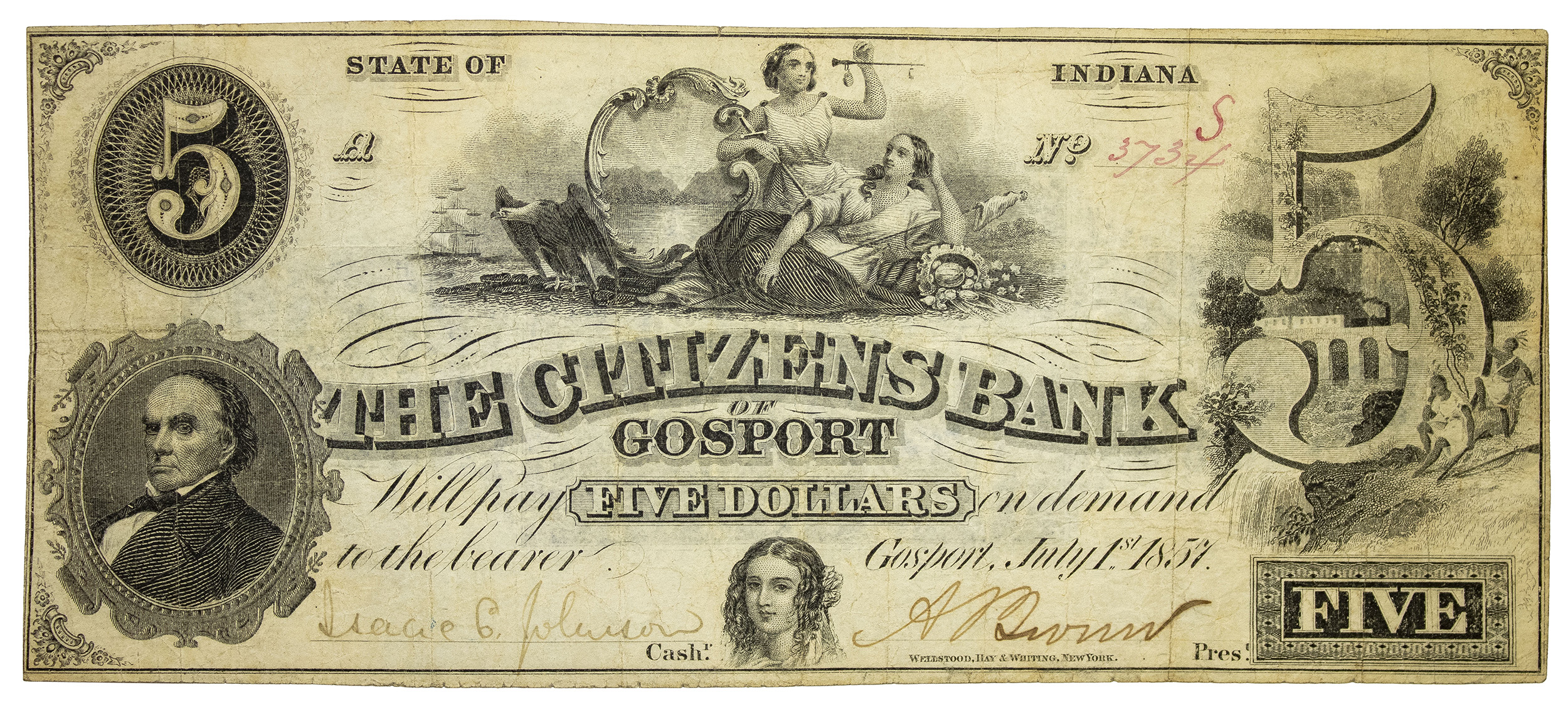 Indiana. Gosport. VF 1857 $5
