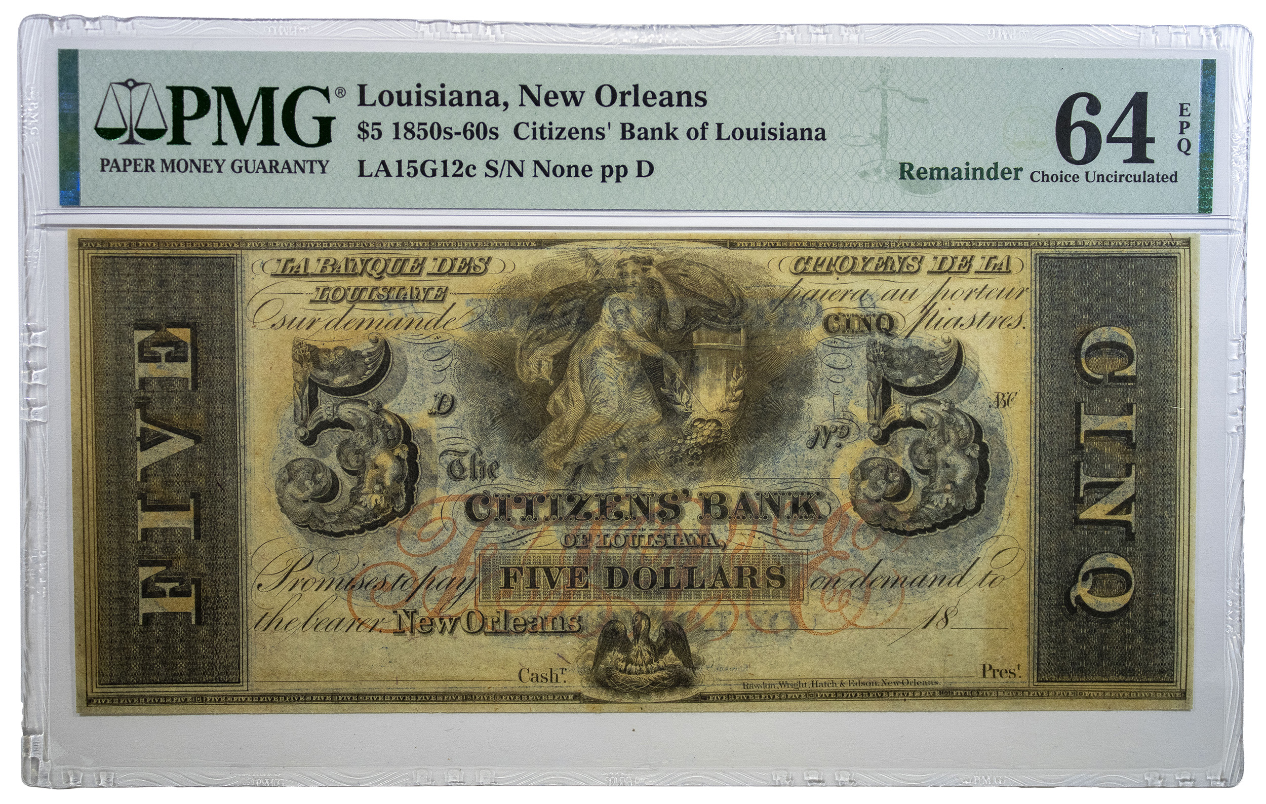 Louisiana. New Orleans. PMG Choice Unc-64 $5 Note