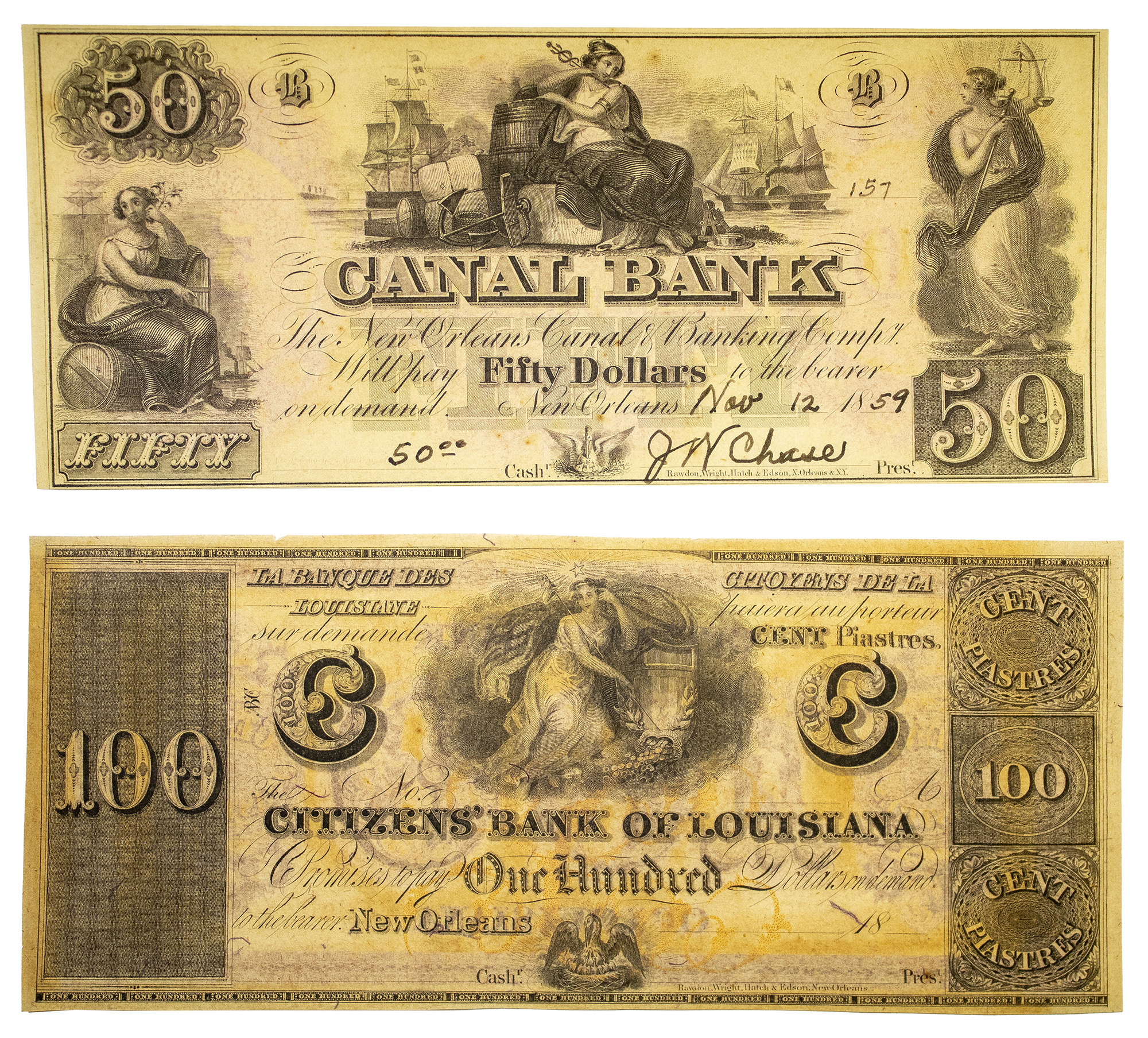 Louisiana. New Orleans. Obsolete Bank Note Pair