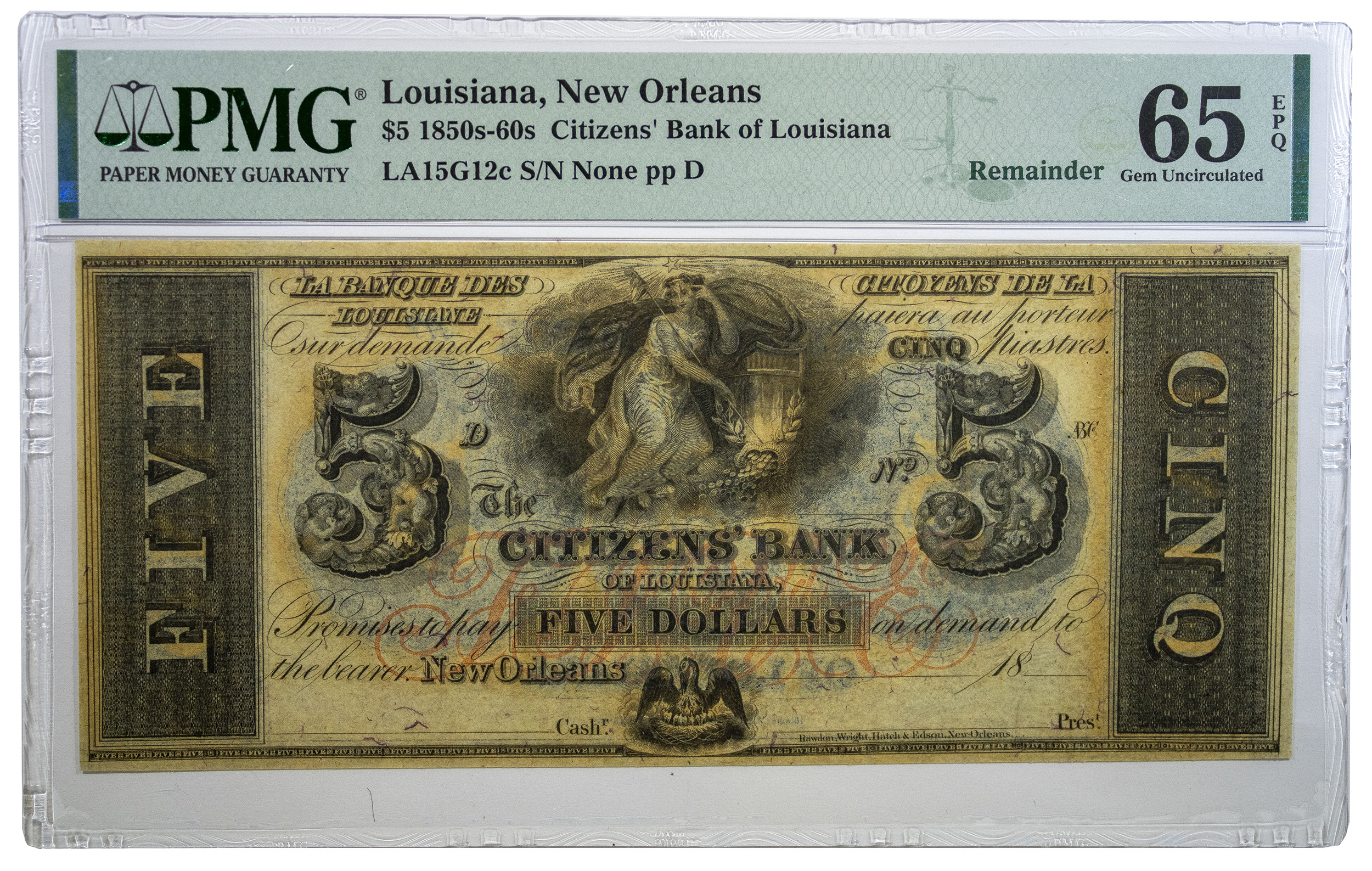 Louisiana. New Orleans. PMG Gem Unc-65 $5 Note