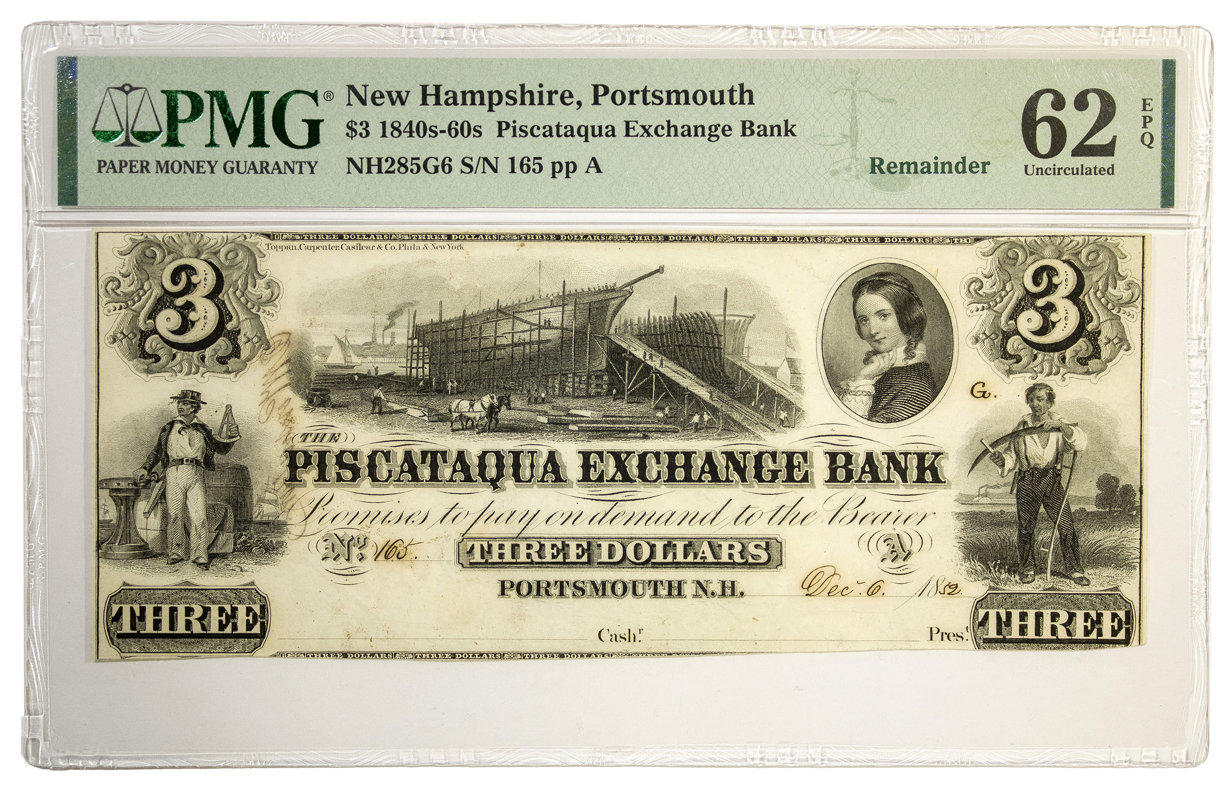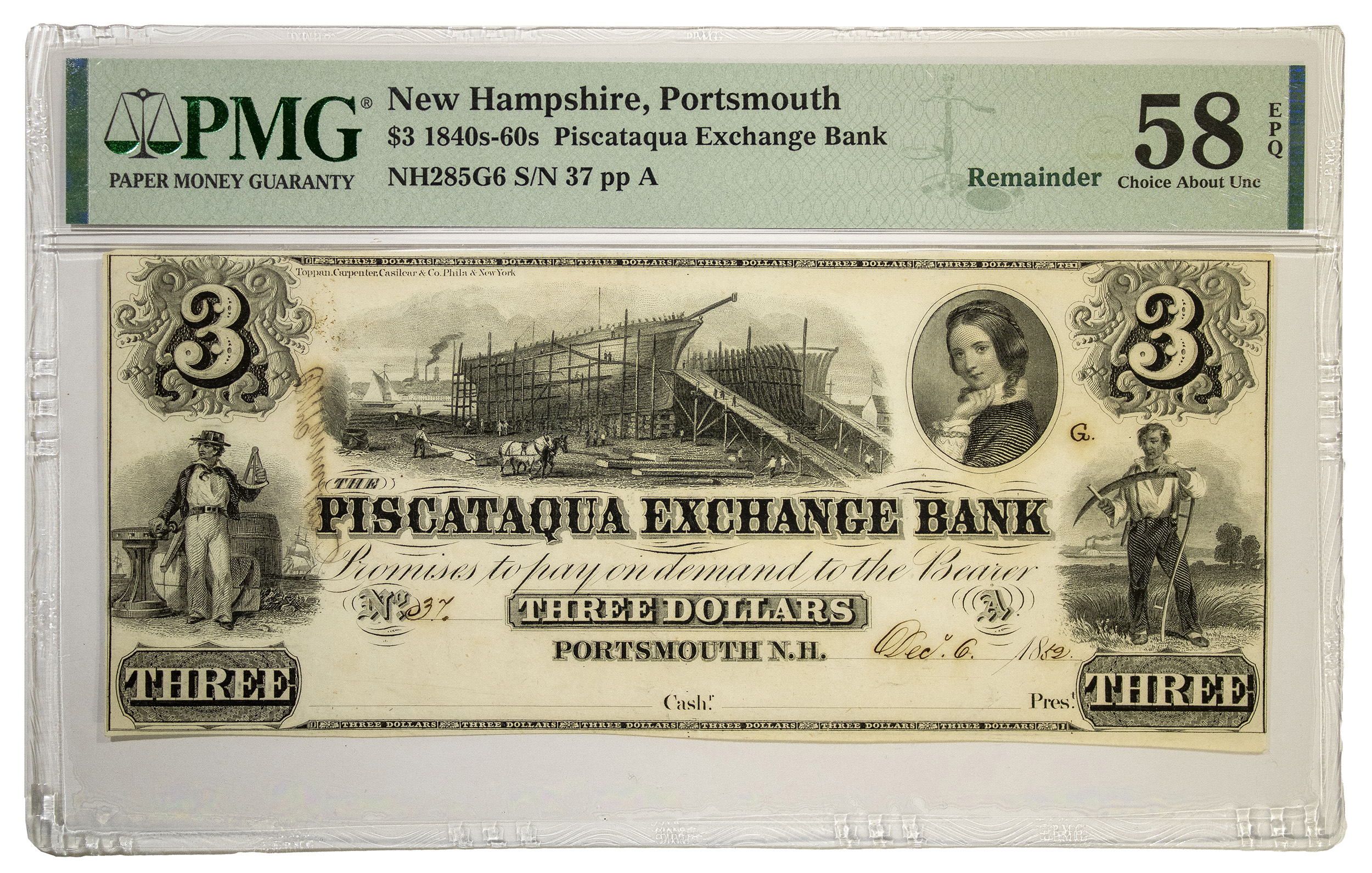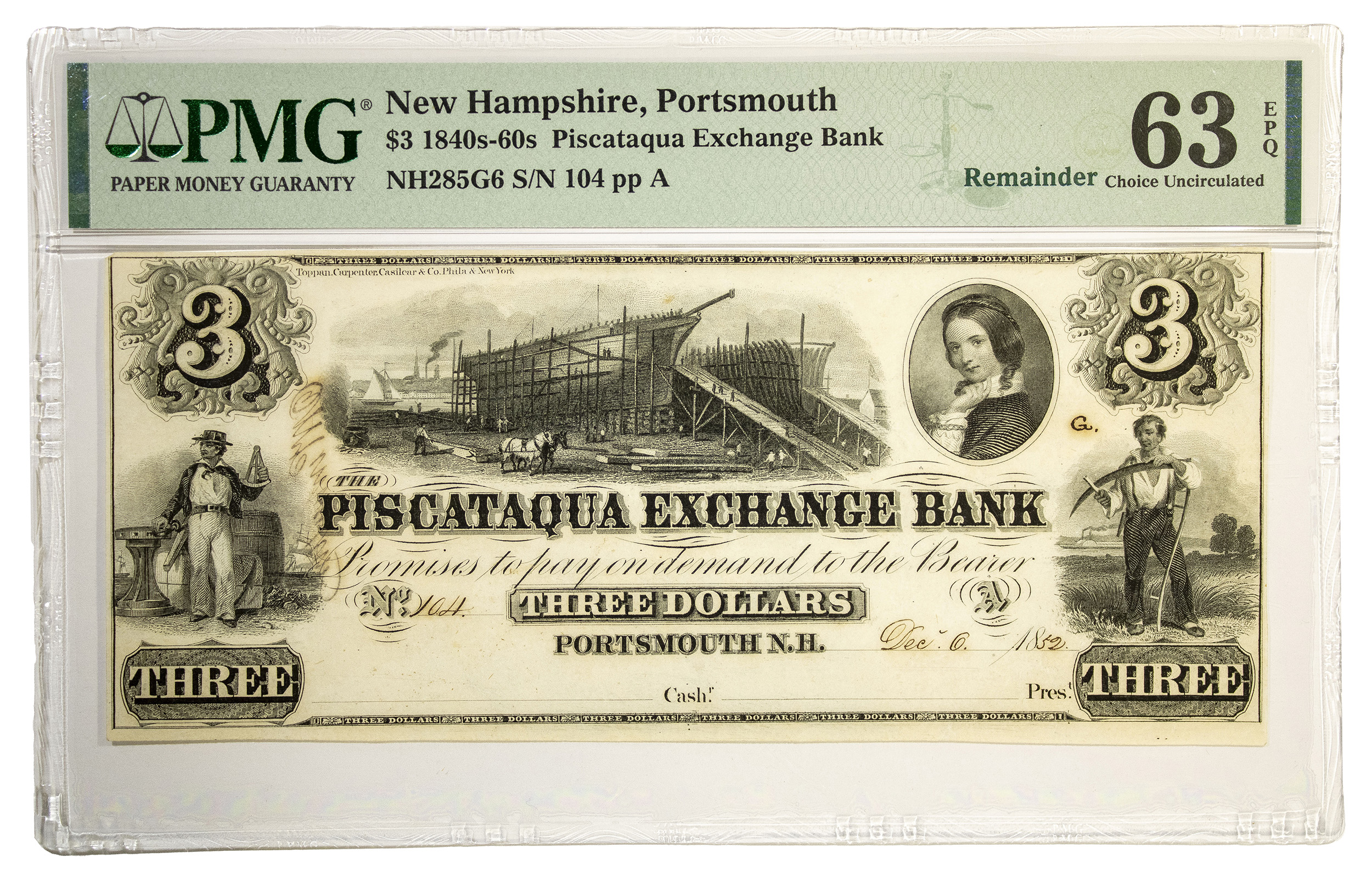 New Hampshire. Portsmouth. PMG CU-63 EPQ $3