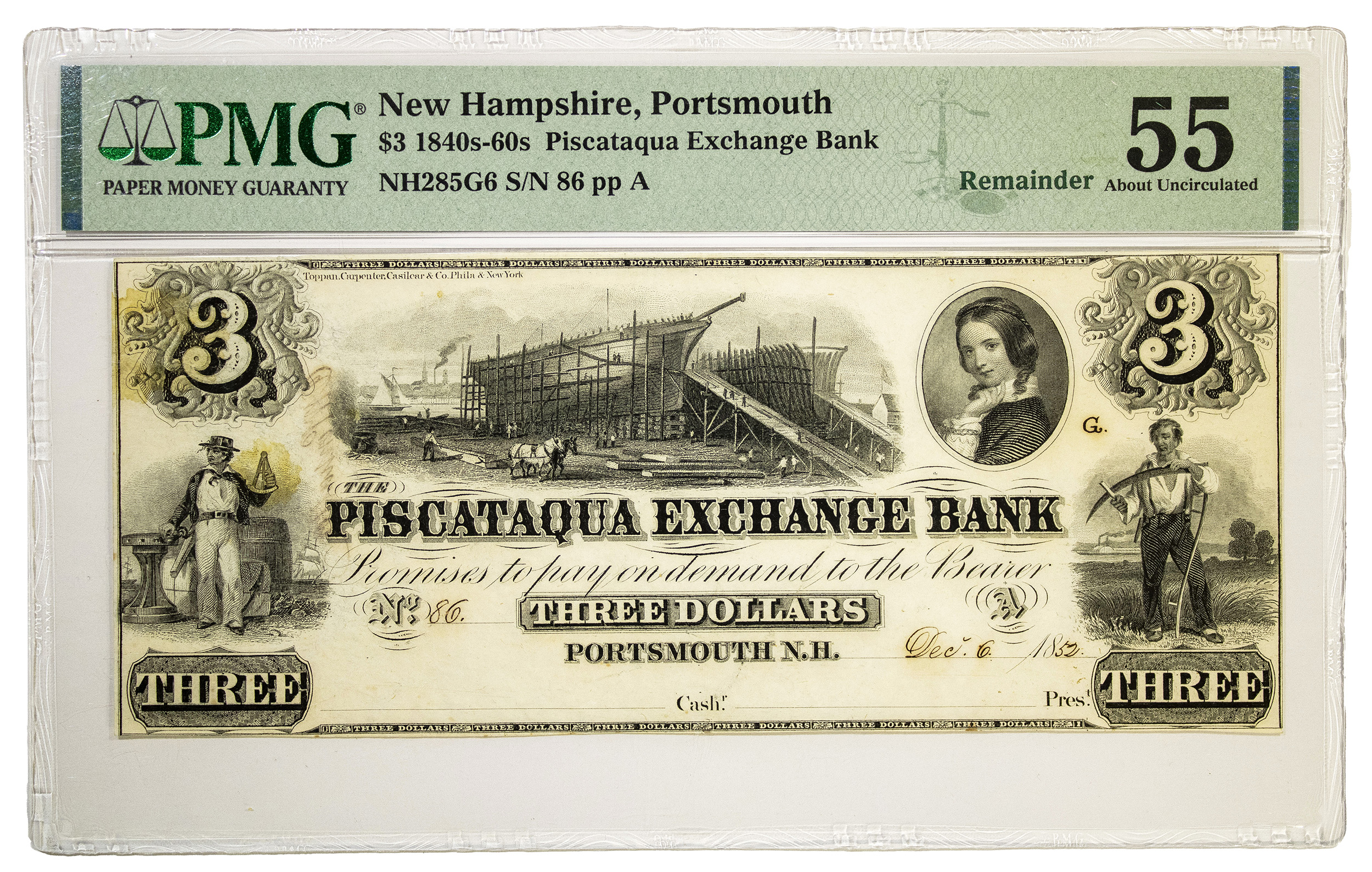 New Hampshire. Portsmouth. PMG AU-55 $3