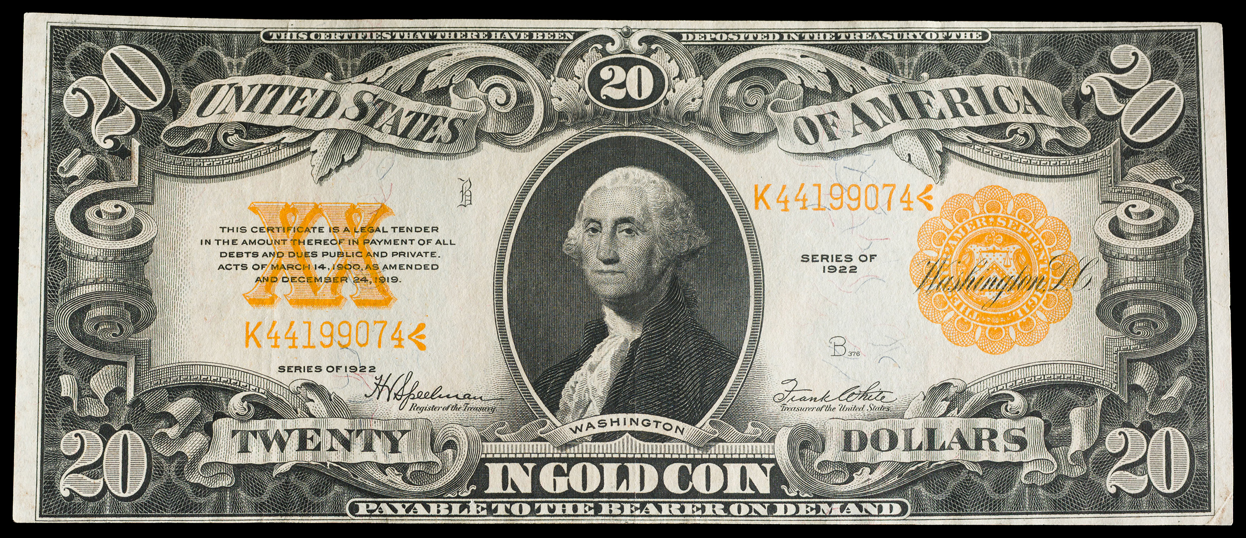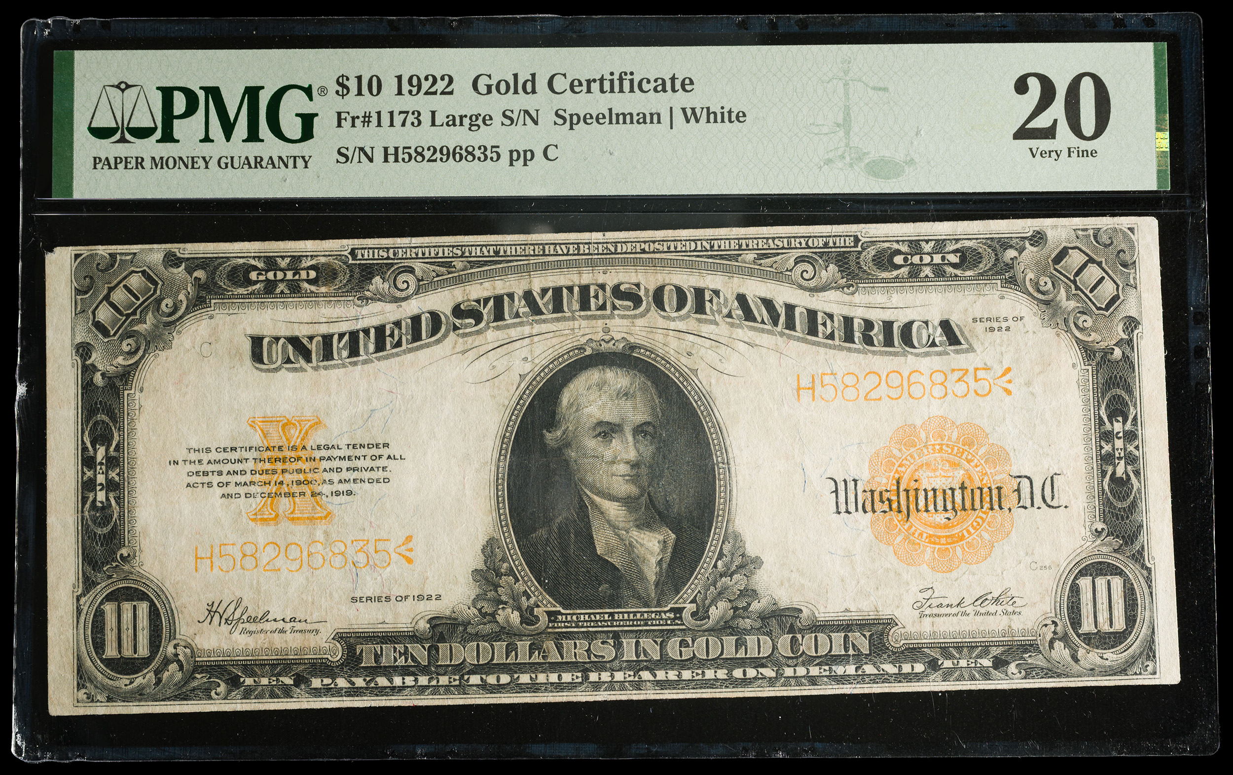 PMG VF-20 Series 1922 $10 Gold Coin Note