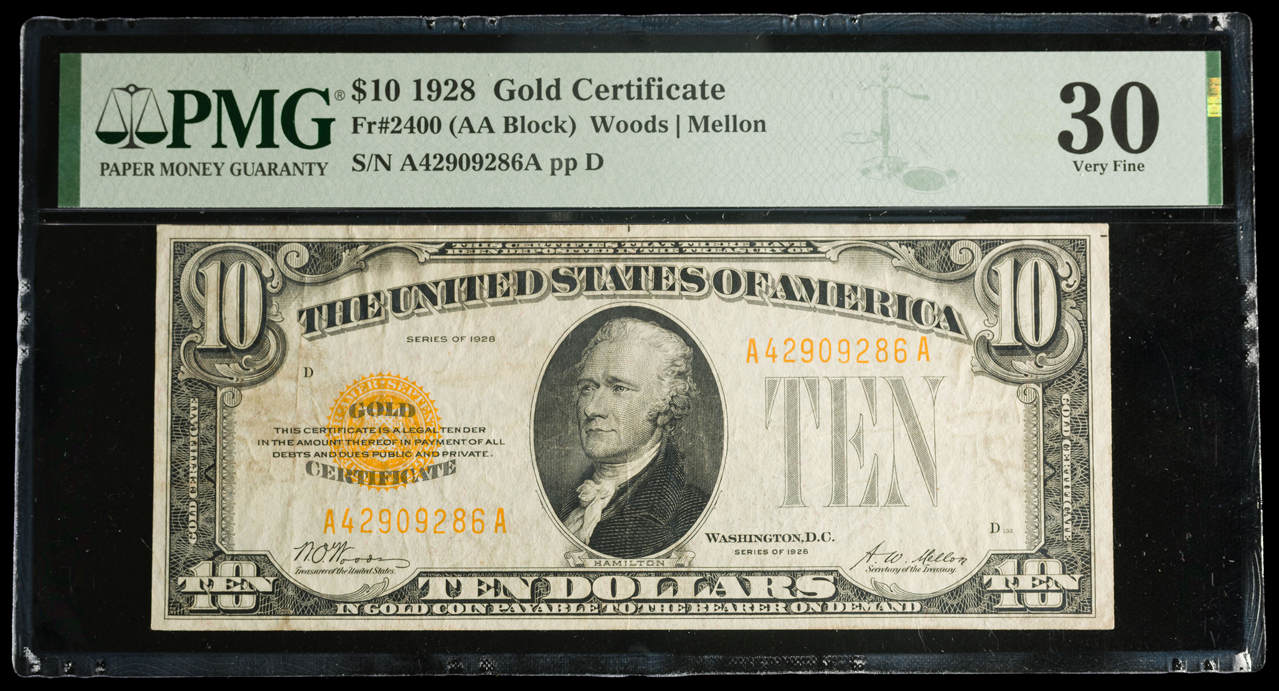 PMG VF-30 Series 1928 $10 Gold Coin Note