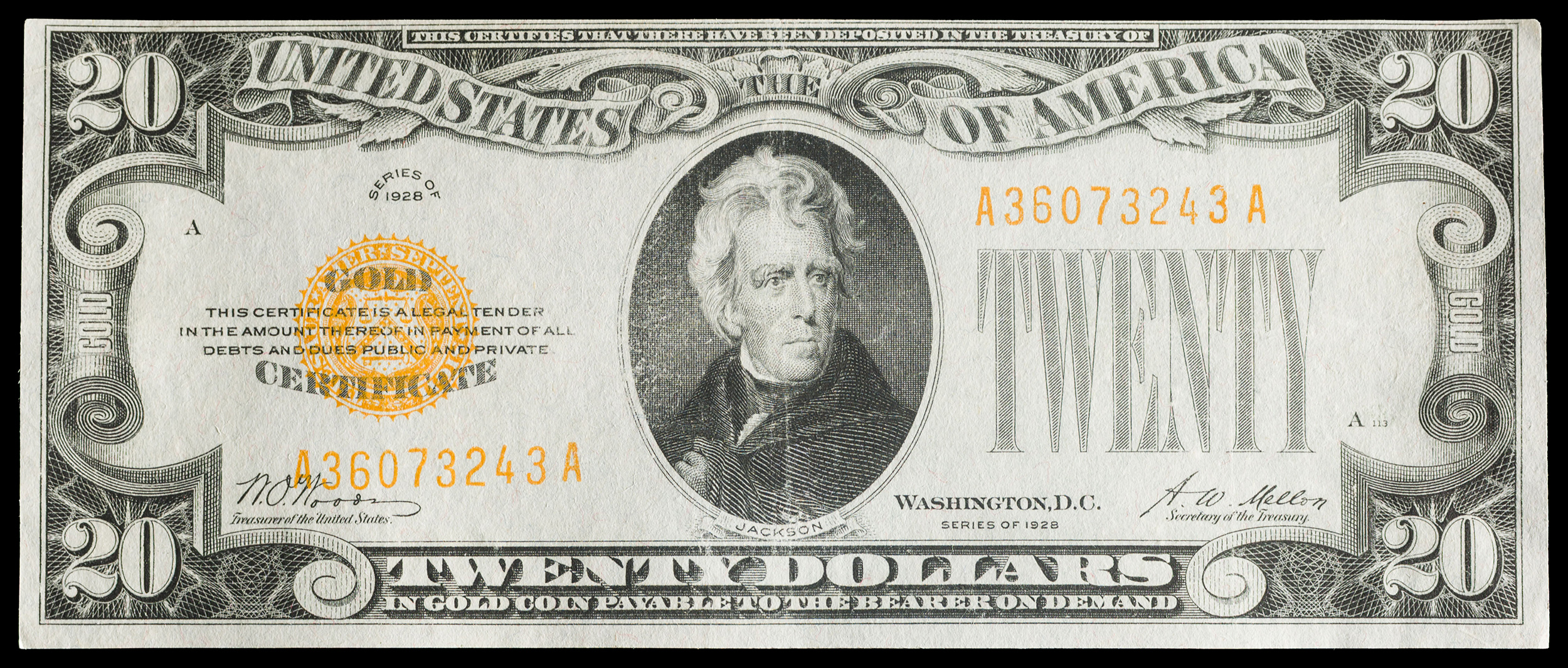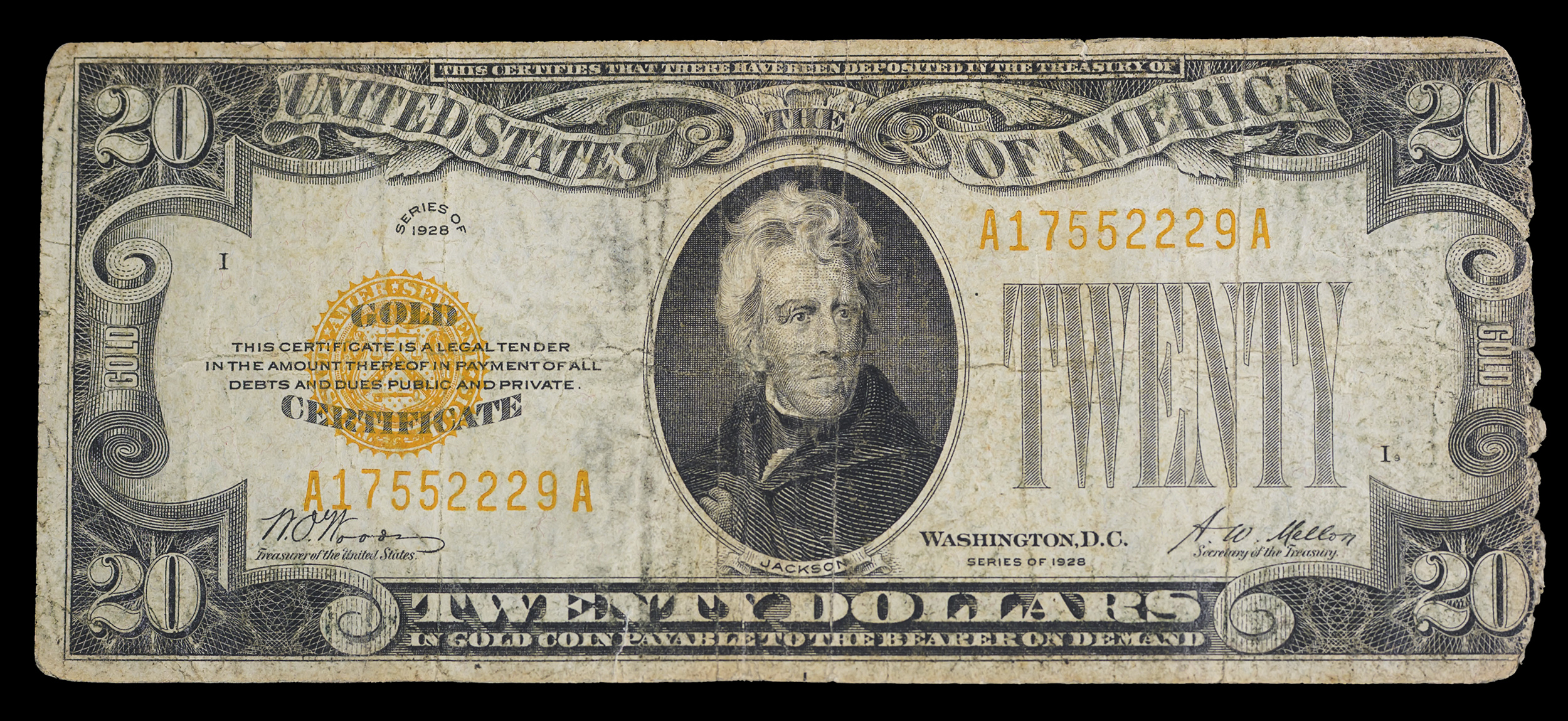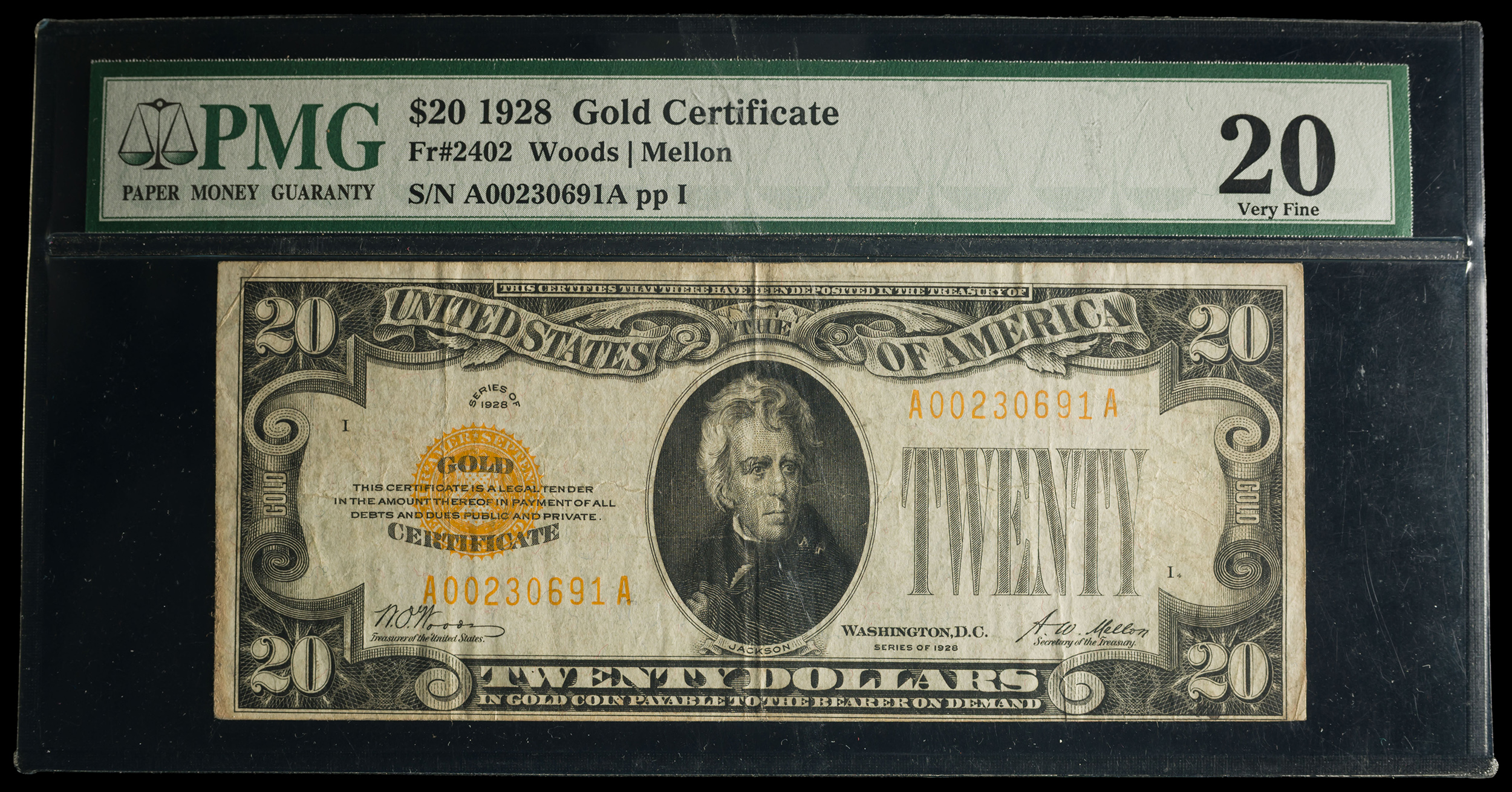 PMG VF-20 Series 1928 $20 Gold Certificate