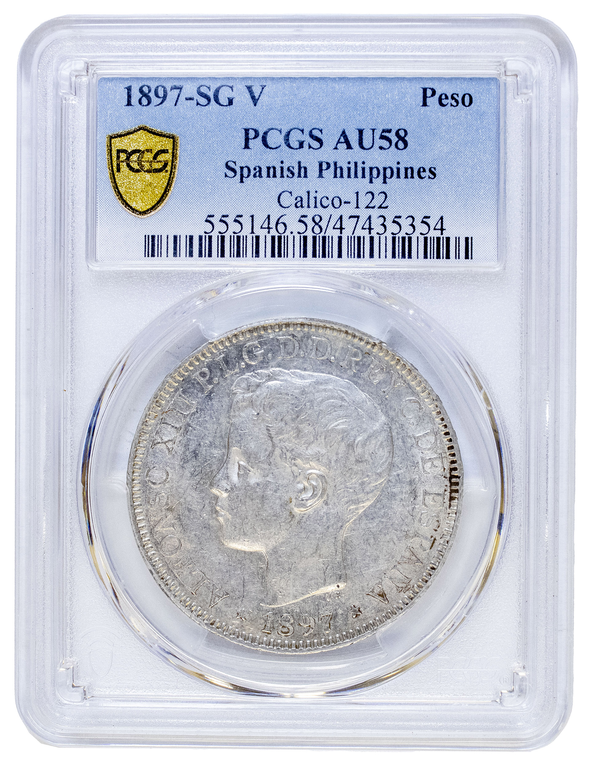 Spanish Philippines. PCGS AU-58 1897 One Peso
