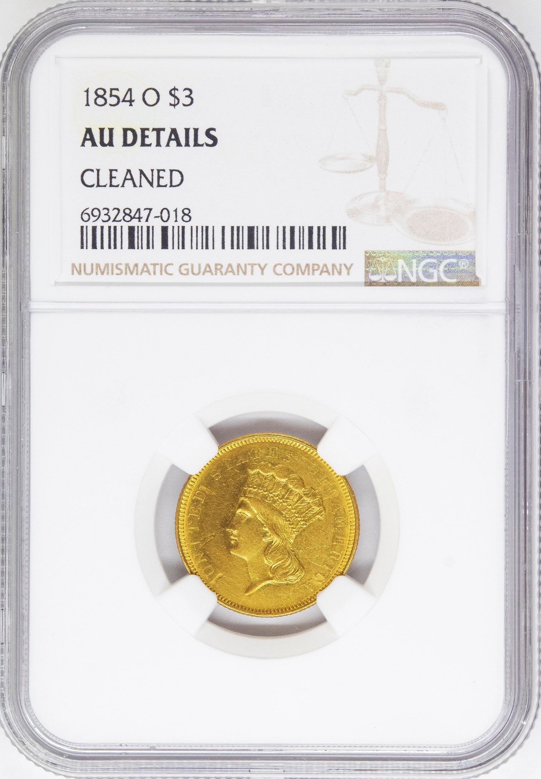 NGC AU Details 1854-O Gold $3 Rarity