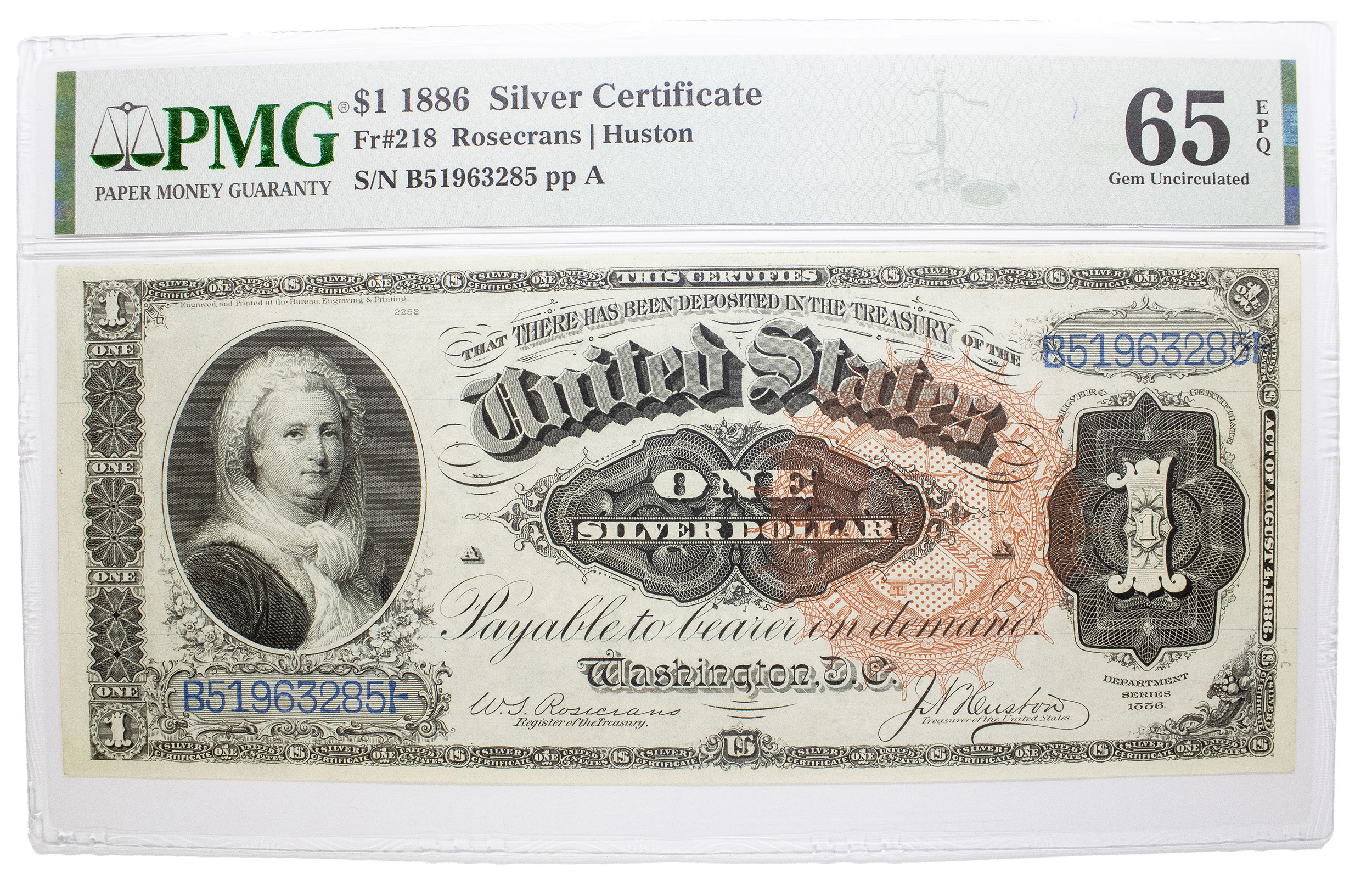 PMG Gem-65 EPQ 1886 One Silver Dollar Note
