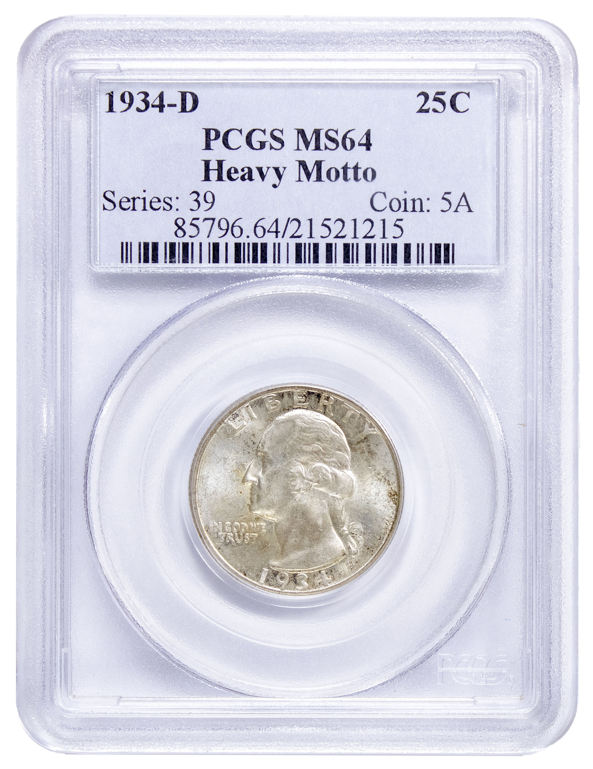 PCGS MS-64 1934-D Heavy Motto Quarter