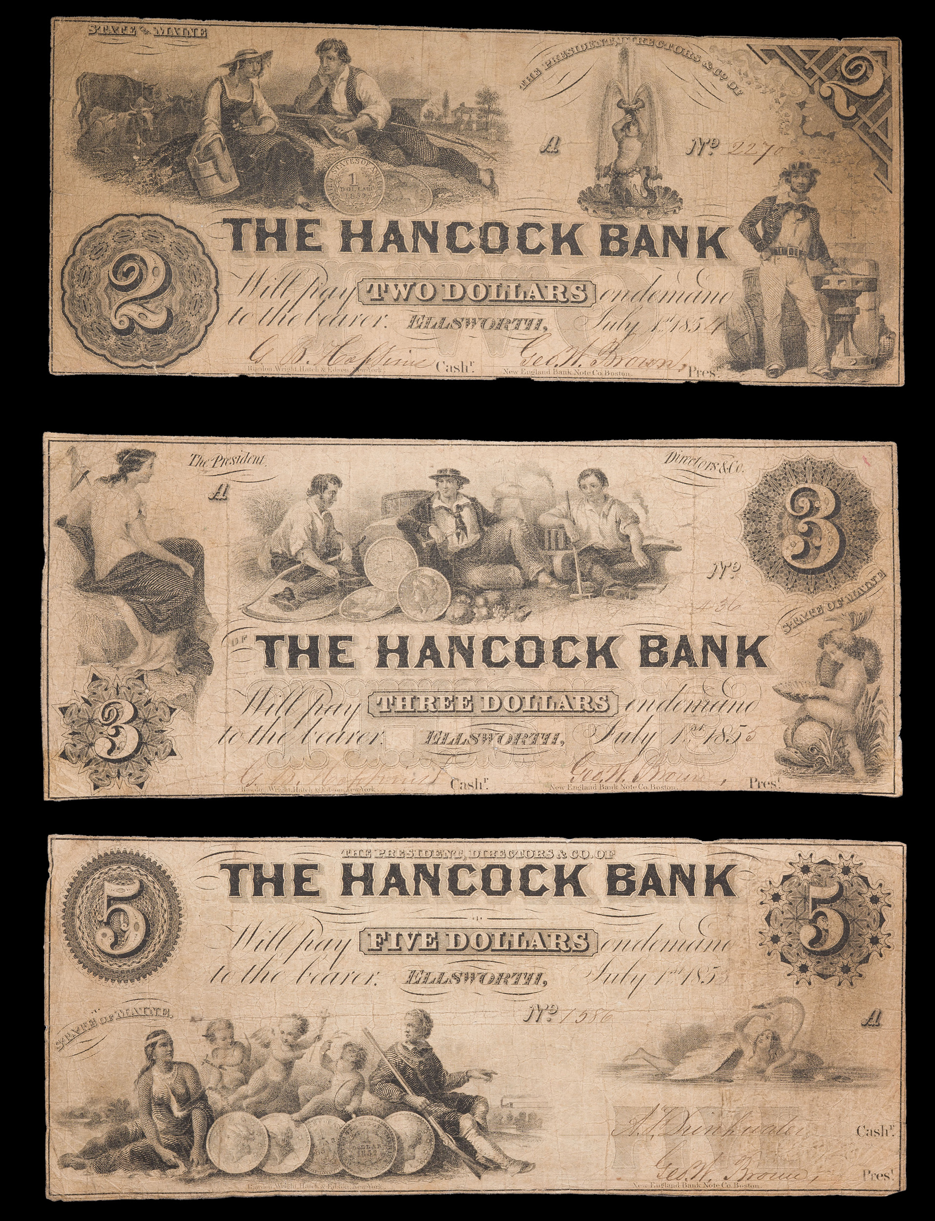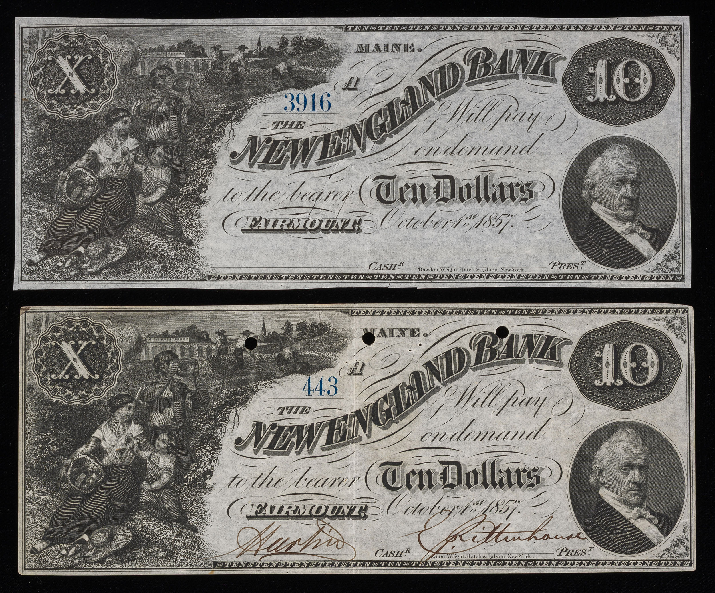 Maine. Hollowell $5 & $10 Pair