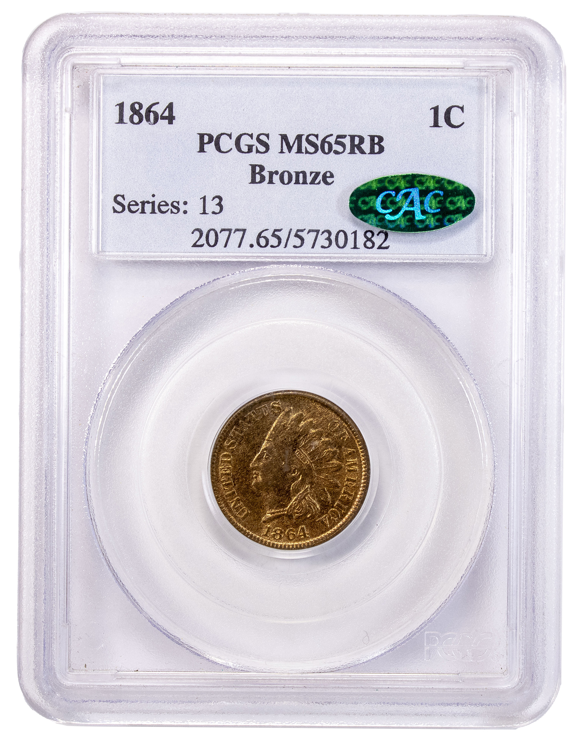 PCGS MS-65 RB CAC 1864 Indian Cent