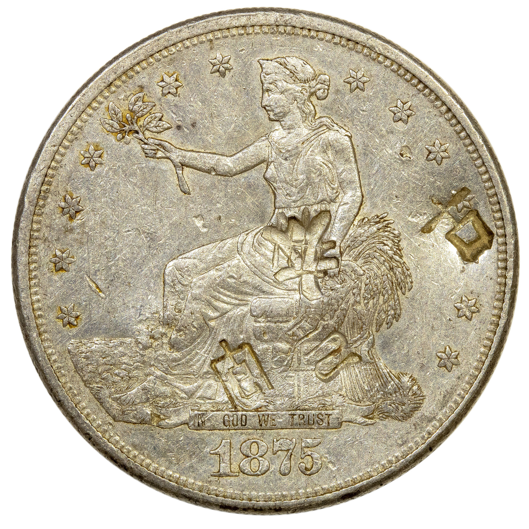 EF-45 Chopmarked 1875-CC Trade Dollar