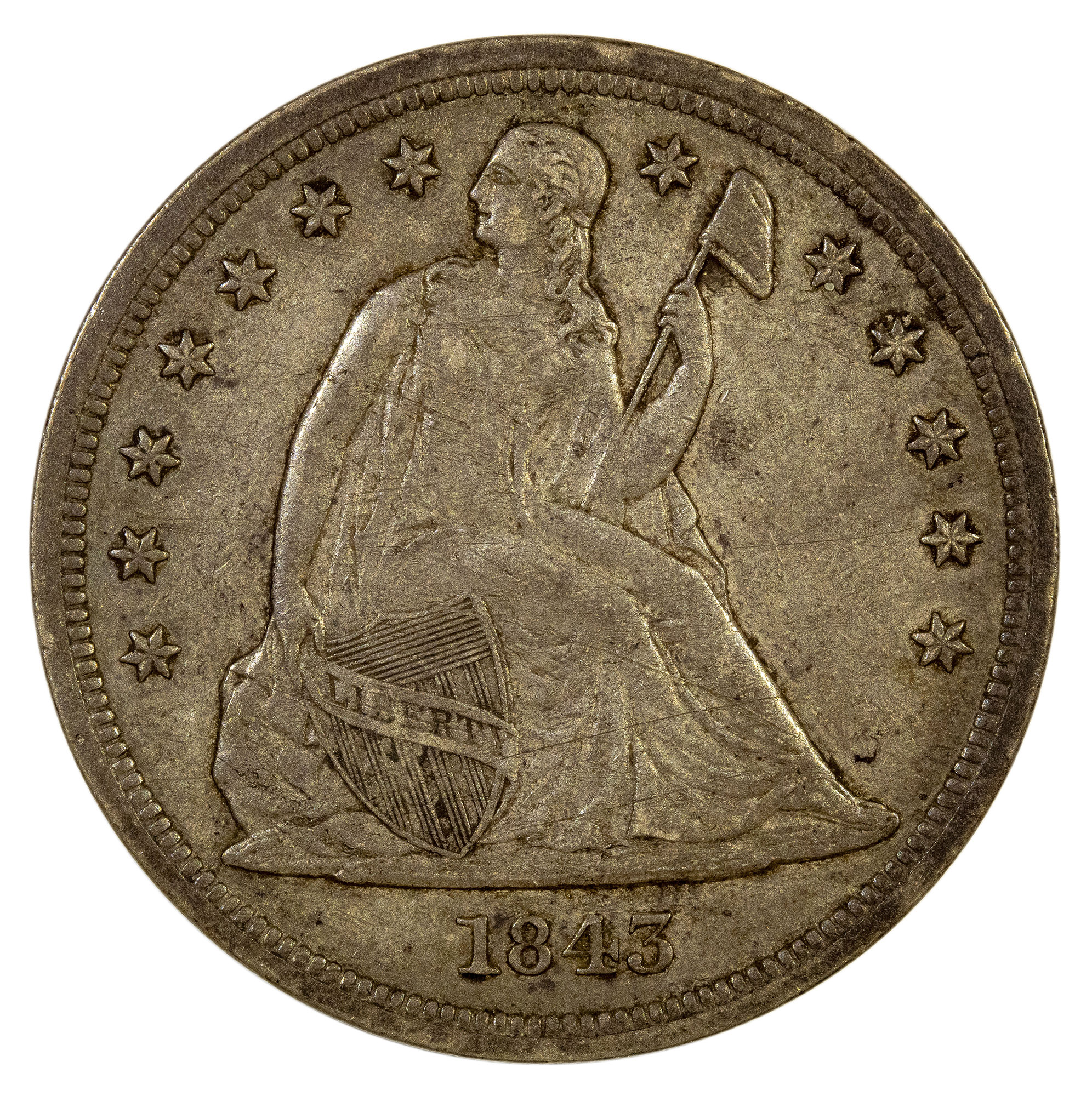 EF-45 1843 Liberty Seated Dollar
