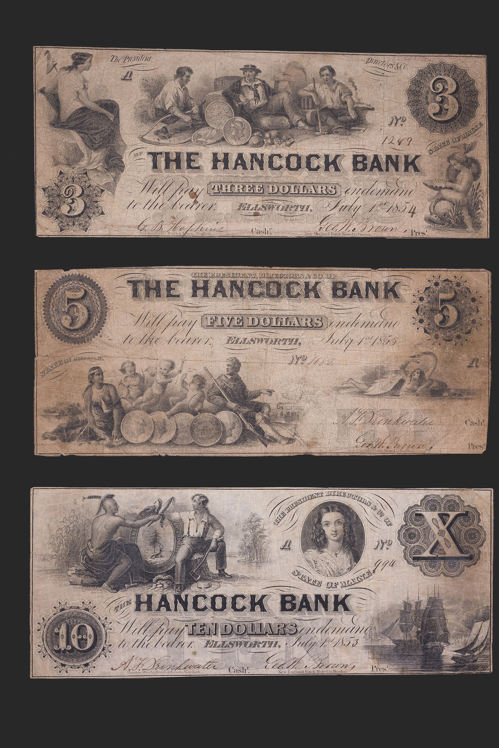 Maine. Ellsworth. Hancock Bank 3 Note Lot