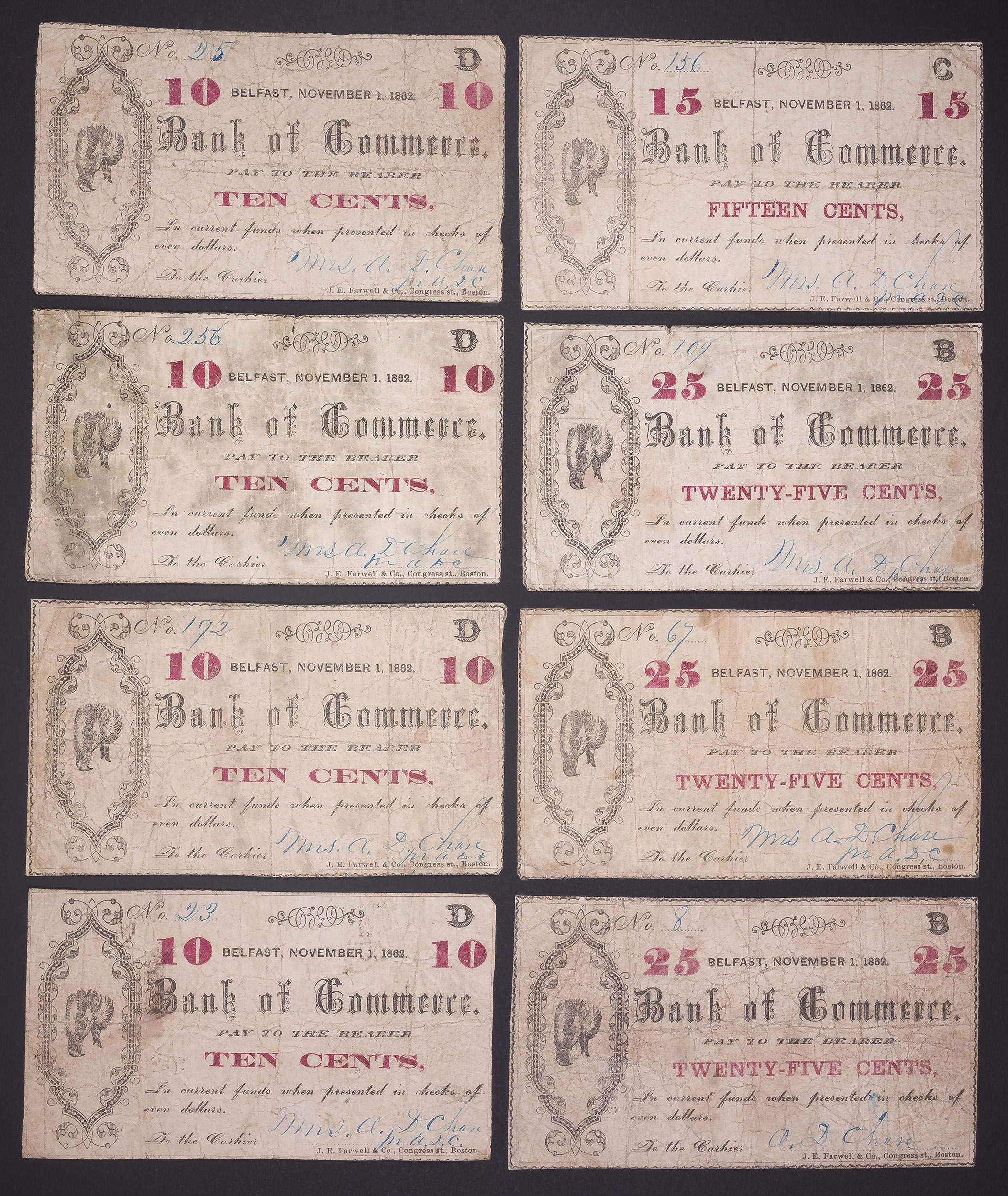 Maine. Belfast. 8 Piece Bank Of Commerce Lot